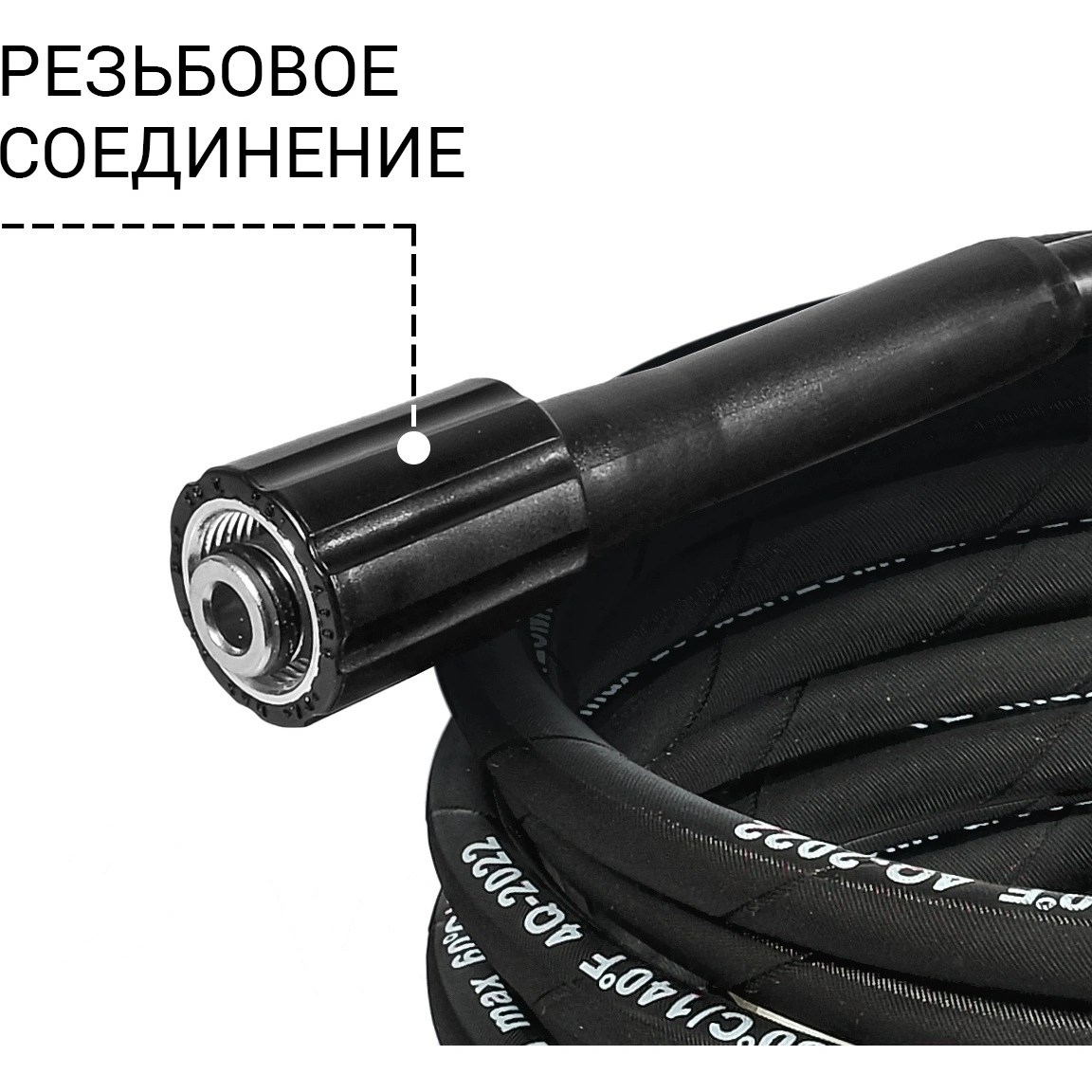 Высокопрочный армированный многослойный шланг длиной 10 метров. На обоих концах стандартная резьба М22х1,5.
