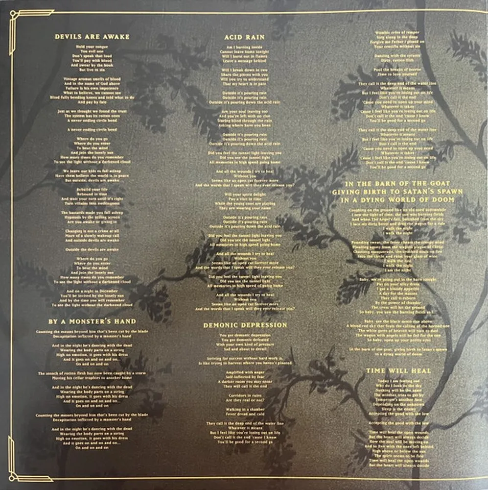Devils Are Awake, By A Monster's Hand, Acid Rain, Demonic Depression, In The Barn Of The Goat Giving Birth To Satan's Spawn In A Dying World Of Doom, Time Will Heal, Better Be Fueled Than Tamed, At The End Of The Sirens, Lonely Fields, Enlighten The Disorder (By A Monster's Hand Part 2)