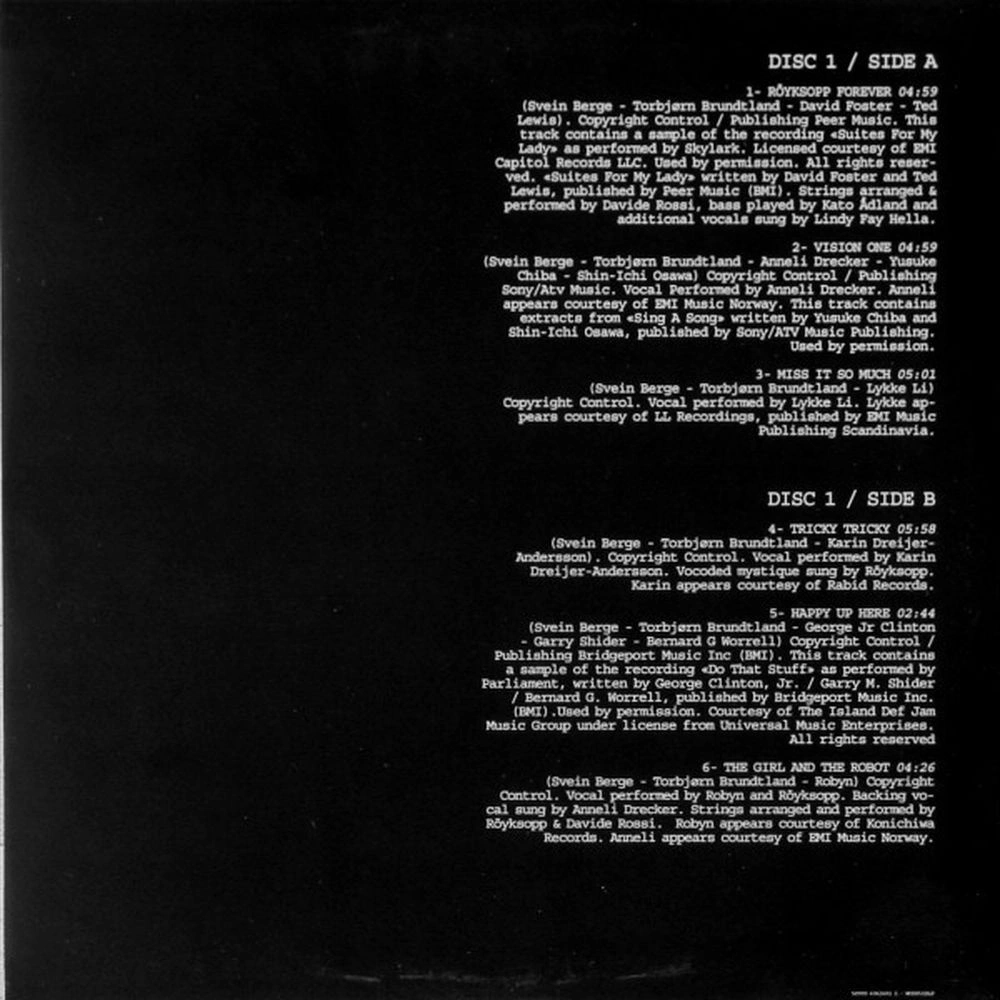 R?yksopp Forever, Vision One, Miss It So Much, Tricky Tricky, Happy Up Here, The Girl And The Robot, It, Silver Cruiser, True To Life, It's What I Want, You Don't Have A Clue