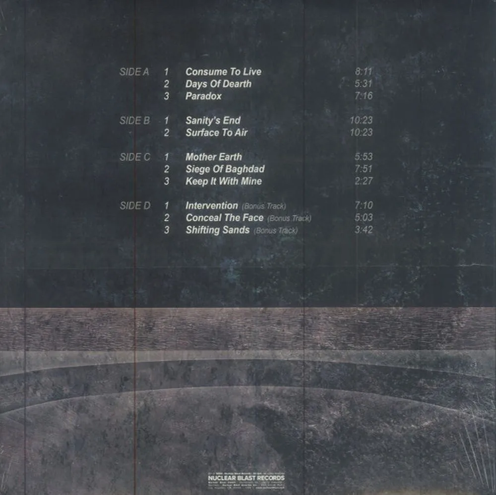 Consume To Live, Days Of Dearth, Sanity's End, Paradox, Surface To Air, Mother Earth, Siege Of Baghdad, Keep It With Mine, Intervention (Bonus Track), Conceal The Face (Bonus Track), Shifting Sands (Bonus Track)