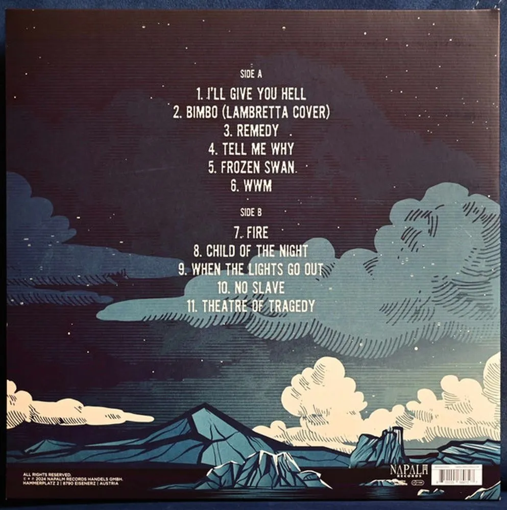 I'll Give You Hell, Bimbo (Lambretta Cover), Remedy, Tell Me Why, Frozen Swan, WWM, Fire, Child Of The Night, When The Lights Go Out, No Slave, Theatre Of Tragedy
