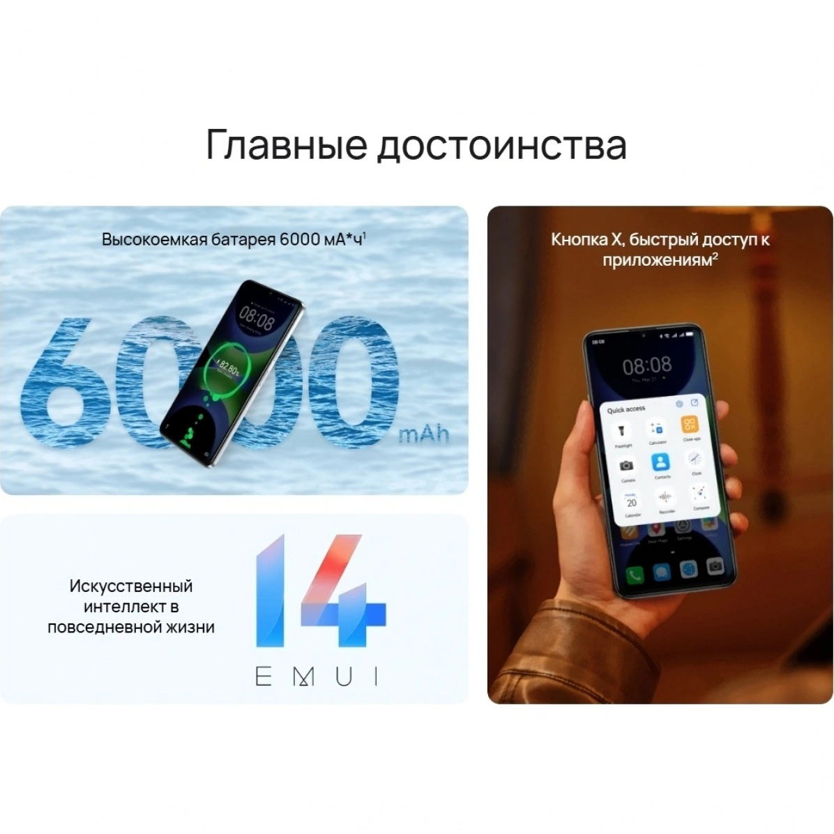 Смартфон работает на базе операционной системы Android 15 с фирменной оболочкой EMUI 14.2, которая предлагает удобный и интуитивно понятный интерфейс.