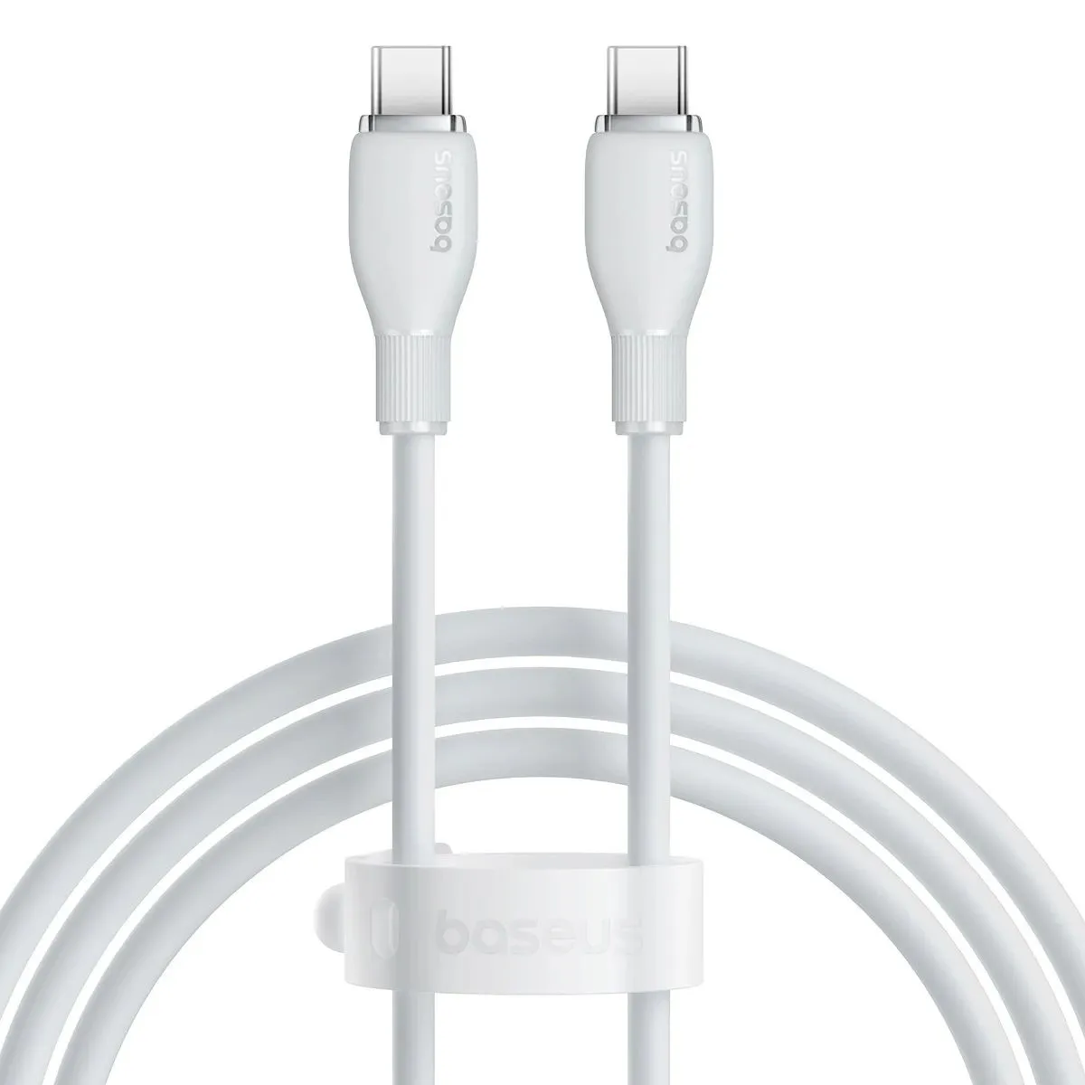 Кабель круглый Baseus USB Type-C - USB Type-C белого цвета используется при передаче данных и зарядке аккумуляторов смартфонов и других портативных устройств. Изделие пропускает ток до 5 А и передает мощность до 100 Вт. Показатели влияют на скорость зарядки.