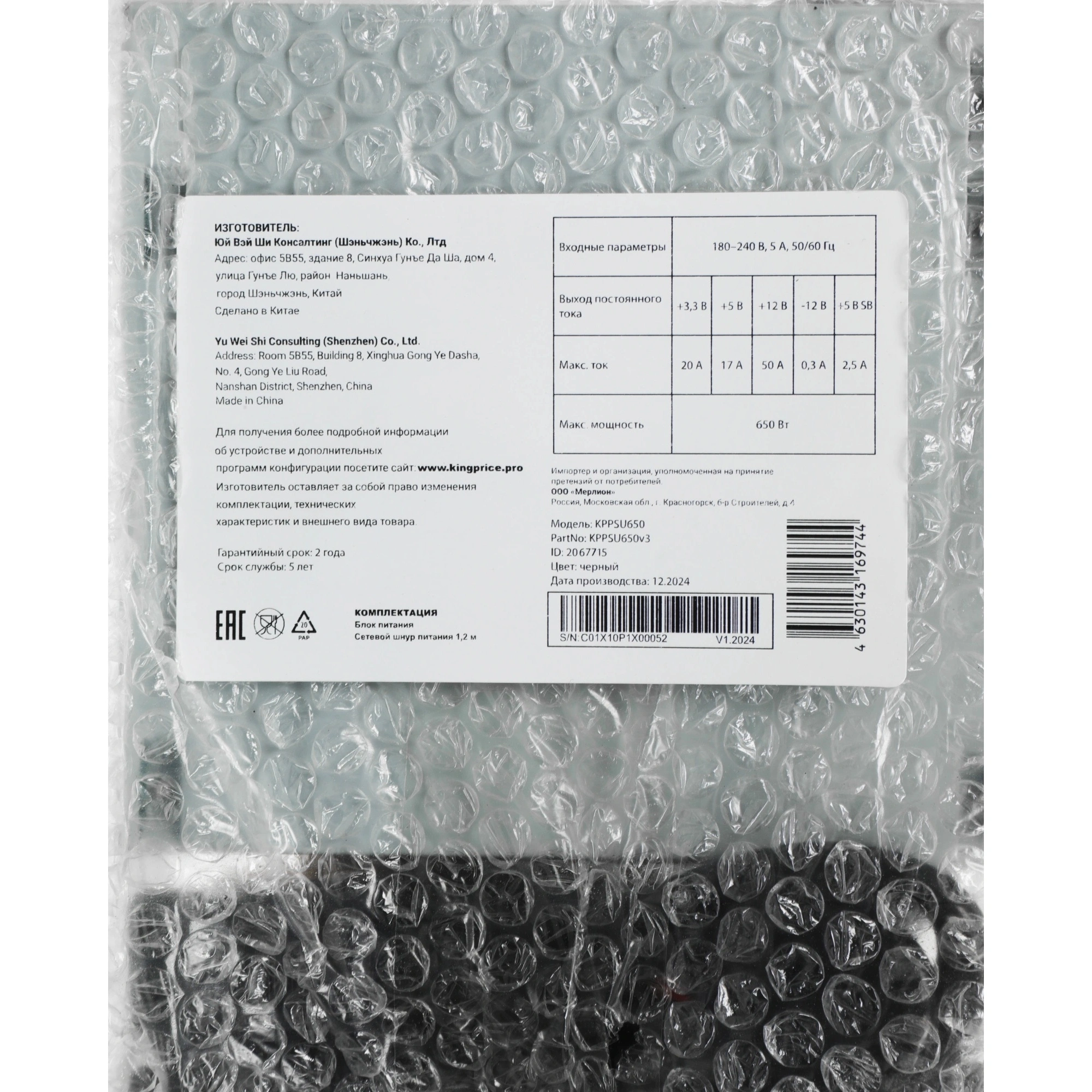 Производится в Китае, этот блок питания от бренда KINGPRICE предлагает хорошее соотношение цены и качества для тех, кто ищет надежность и долговечность в сегменте блоков питания среднего класса.