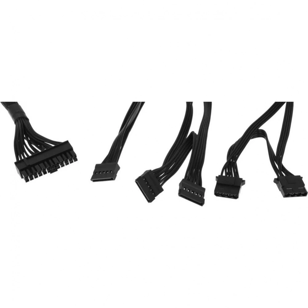 Этот блок питания оснащен одним вентилятором диаметром 120 мм, который помогает поддерживать оптимальную температуру благодаря активной системе охлаждения. Хотя кабели не являются отстегивающимися, они обеспечивают все необходимые подключения для вашего оборудования: разъем питания материнской платы 20+4 pin, разъемы питания процессора на 4 pin и 8 pin, а также питание для видеокарты с четырьмя 6+2 pin разъемами.
