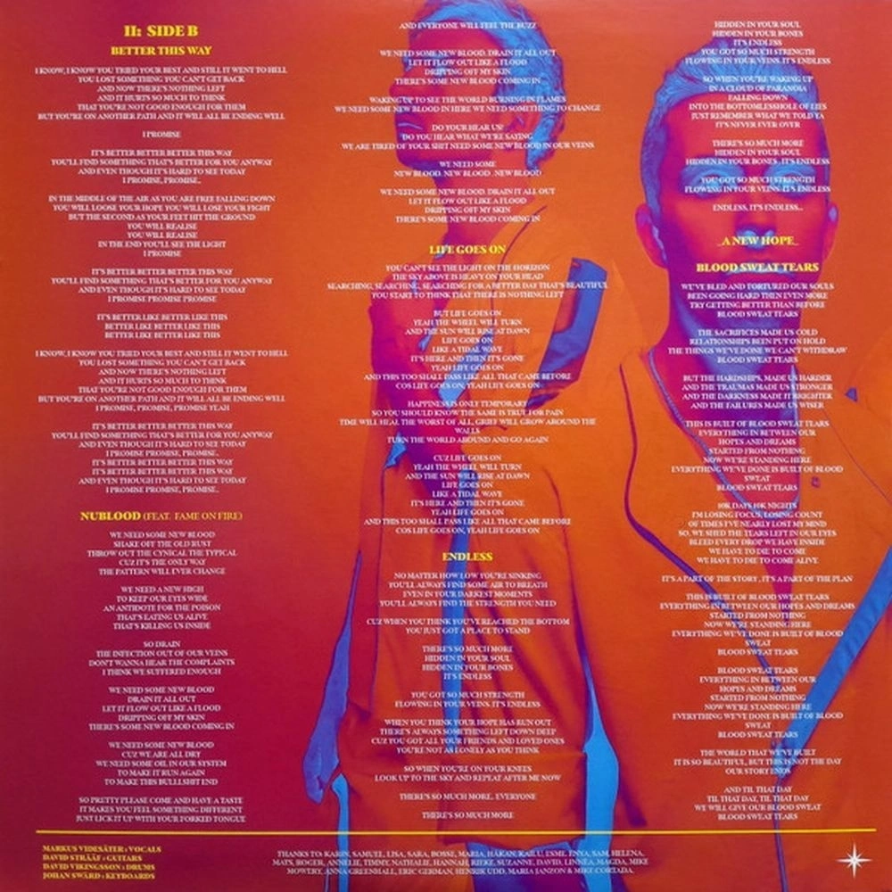 Rain Down, Best For You, Demons, Waves, Antidote, Claustrophobia, _Hope Is A Cult_, Better This Way, NuBlood, Life Goes On, Endless, _A New Hope_, Blood Sweat Tears