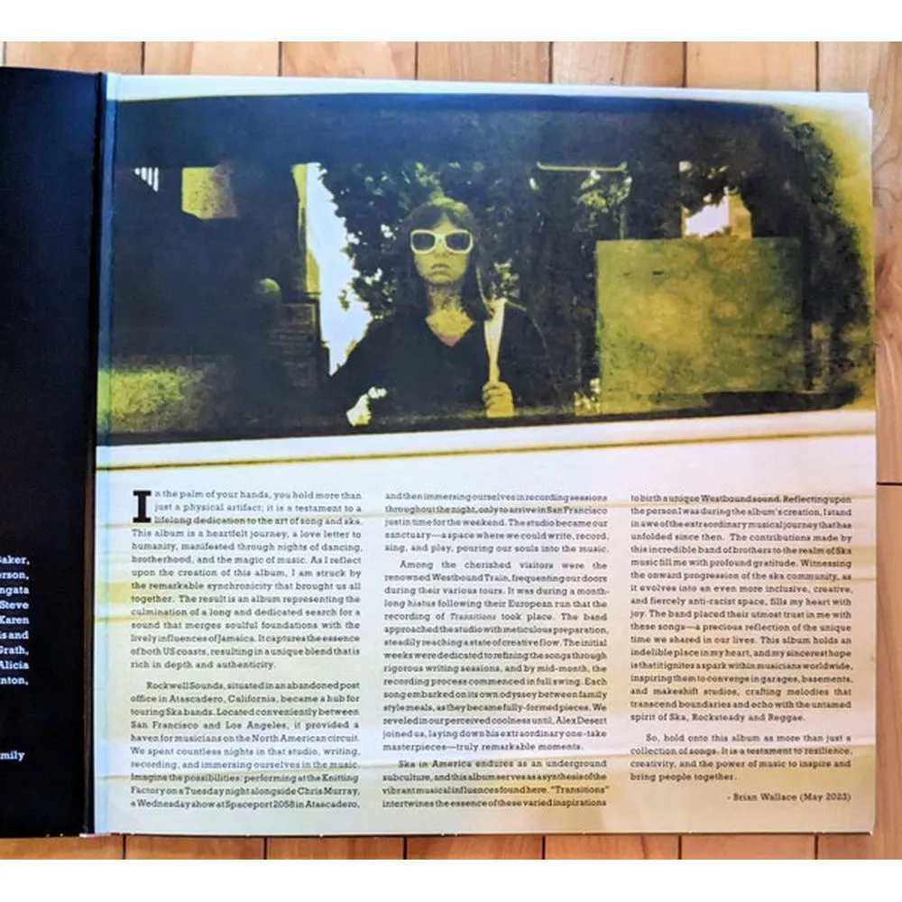 Transitions, третий альбом бостонских ска-музыкантов Westbound Train, наконец-то впервые издаётся на виниле, спустя 17 лет после его первого релиза на лейбле Тима Армстронга Hellcat Records. 16-песенный сборник демонстрирует пик формы группы, искусно сплетая элементы раннего ямайского ска, регги и рокстеди с американскими влияниями 60-х — джазом, соулом и фанком, — создавая собственное аутентичное звучание. Как отмечает AllMusic в своём 4-звёздочном обзоре: «Transitions — это не просто дань уважения прошлому, а переосмысление всей его мощи и величия». Фронтмен Оби Фернандес демонстрирует мощный, эмоциональный вокал на протяжении всего альбома, а Алекс Дезерт из Hepcat добавляет свой фирменный голос в двух треках. Двойной LP упакован в разворотный конверт с новыми аннотациями от продюсера и звукорежиссера Брайана Уоллеса.