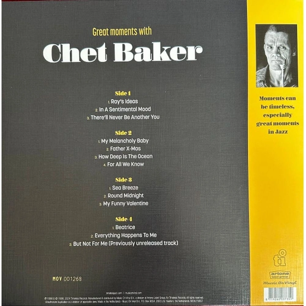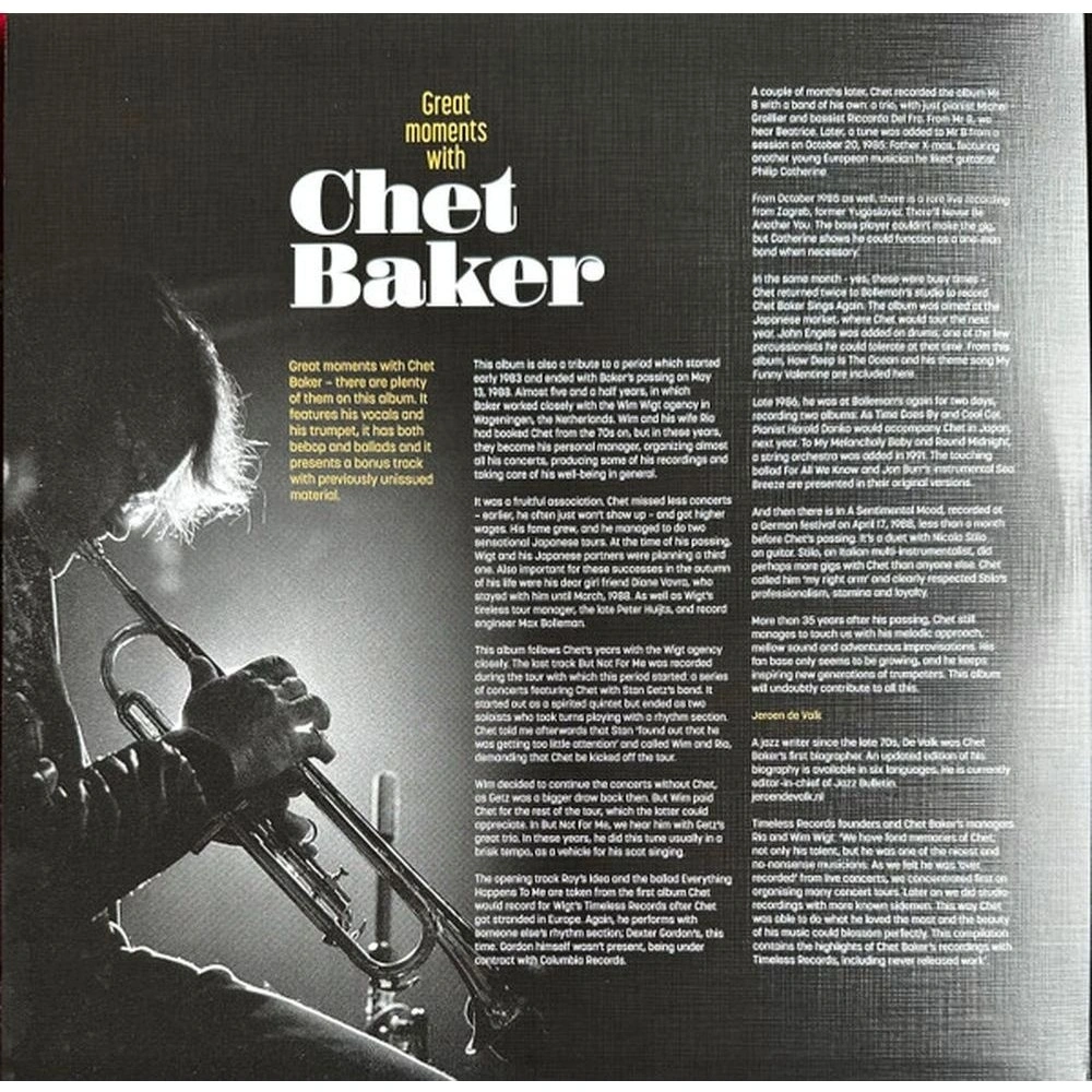 Chet Baker - Great Moments With (coloured) (8719262037359) виниловая пластинка - стоимость товара 4400 руб. в интернет-магазине КотоФото. Характеристики, фото и описание доступны на карточке товара. Купить товар можно на сайте онлайн или заказать по телефону 8(812)426-98-99 в Санкт-Петербурге, а забрать в пункте самовывоза или оформить доставку на дом.