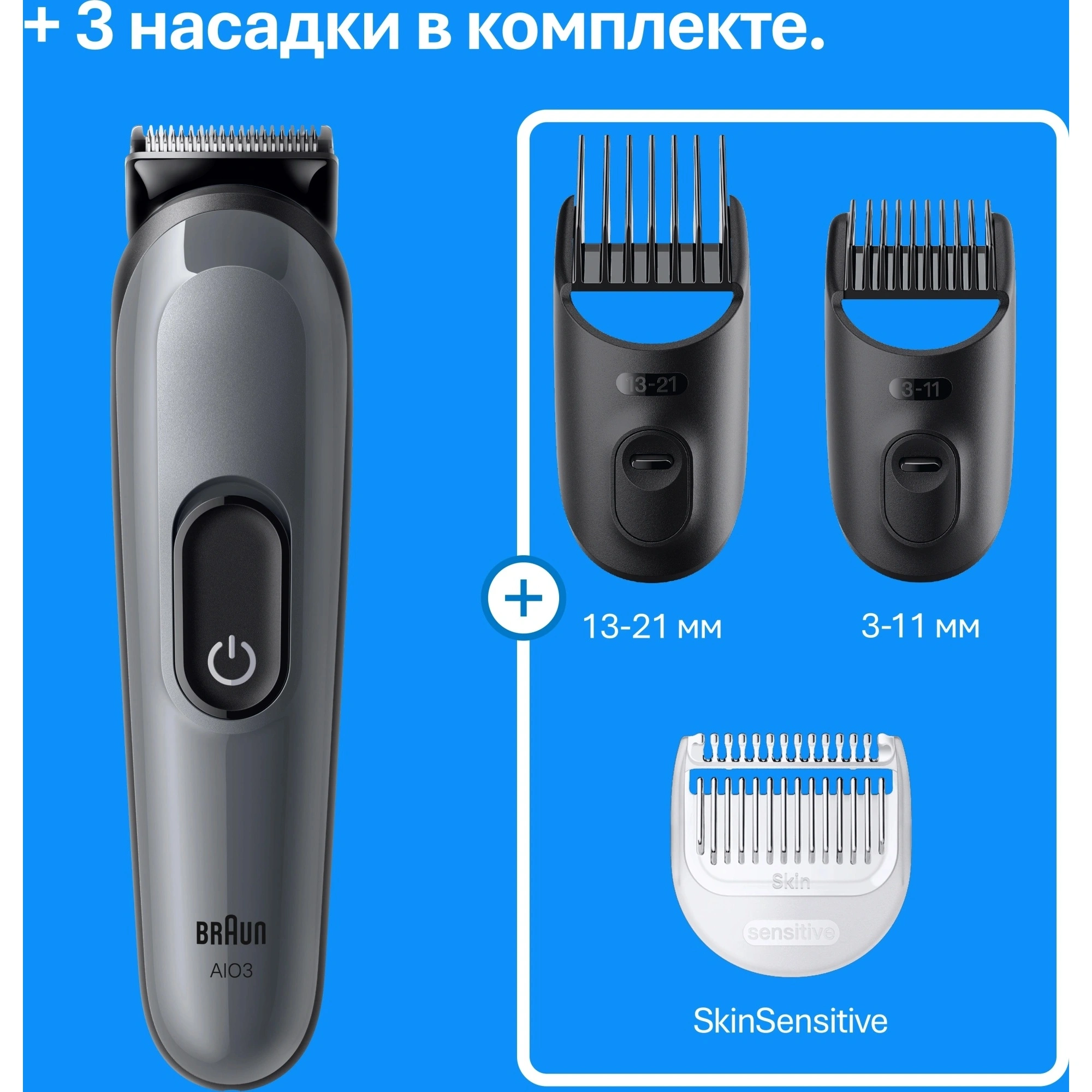 Триммер Braun AIO3500 серый (насадок в компл:3шт) - характеристики и описание, фото и цены представлены на карточке товара. Для того чтобы купить товар по цене 2894 руб., вам надо позвонить по телефону 8(812)426-98-99 в Санкт-Петербурге, или оформить покупку в личном кабинете.