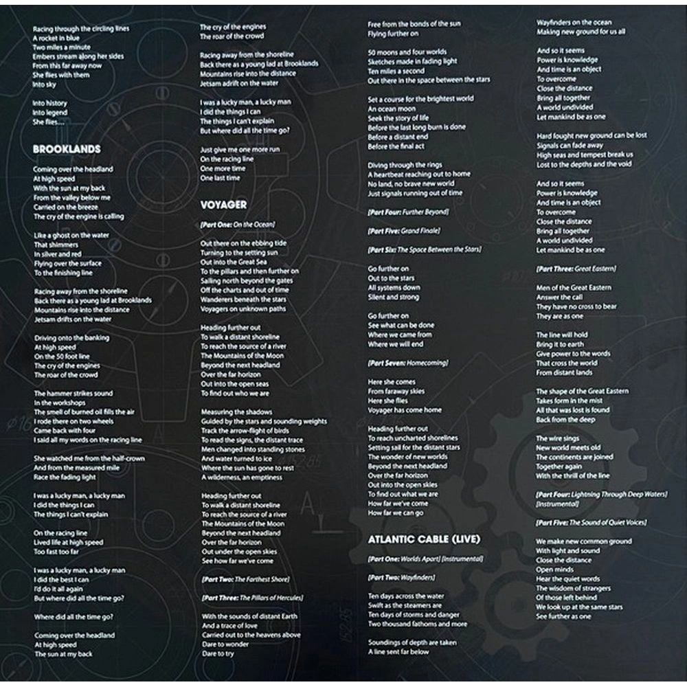 Наряду с вокалом покойного Дэвида Лонгдона, составленным из записей оригинального альбома, «East Coast Racer» представляет собой совершенно новую студийную версию состава группы 2019 года. «Brooklands» включает в себя новые записи ударных и баса, а «Voyager» дополнен гитарой и скрипкой. Чтобы придать проекту чёткое ощущение концептуальной преемственности, все треки тематически посвящены тому, как человечество использовало свою изобретательность для расширения своего влияния посредством развития и применения технологий.