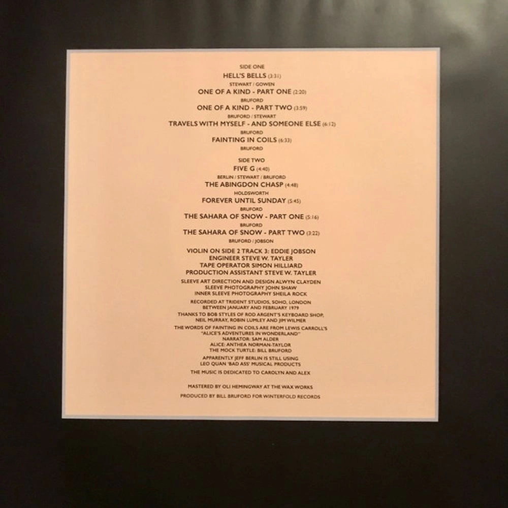 Это окончательное виниловое переиздание переиздано на собственном лейбле Бруфорда Winterfold Records и было лично проверено Биллом Бруфордом.