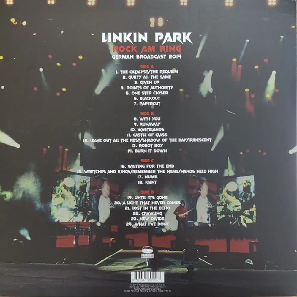 В этом комплекте из двух виниловых пластинок впервые на виниле представлено великолепное выступление Linkin Park на фестивале Rock am Ring 2014 года. Это служит приятным напоминанием о том, какой великолепной концертной группой были Linkin Park в этот поворотный момент их динамичной карьеры.