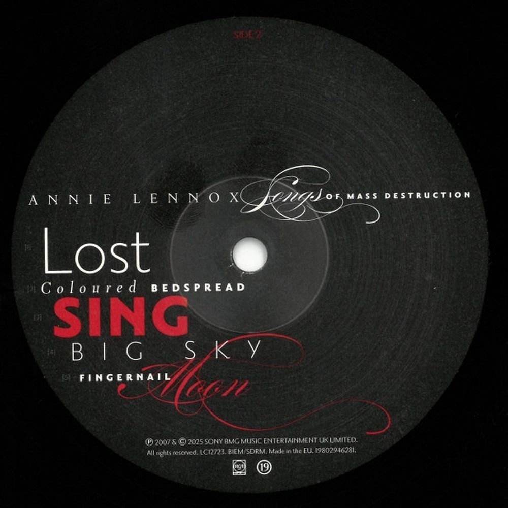 Annie Lennox - Songs Of Mass Destruction (0198029462814) виниловая пластинка - купить по цене 3427 руб. в интернет-магазине КотоФото. На карточке товара Вы можете посмотреть подробное описание, характеристики и фото. Заказать товар можно на сайте, добавив в корзину, или позвонить по телефону 8(812)426-98-99 в Санкт-Петербурге. Доступен самовывоз и доставка.