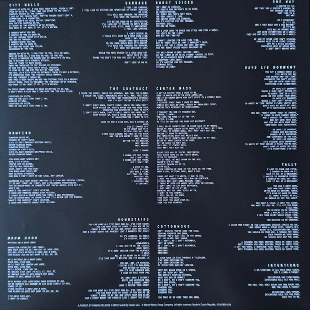 City Walls, RAWFEAR, Drum Show, Garbage, The Contract, Downstairs, Robot Voices, Center Mass, Cottonwood, One Way, Days Lie Dormant, Tally, Intentions