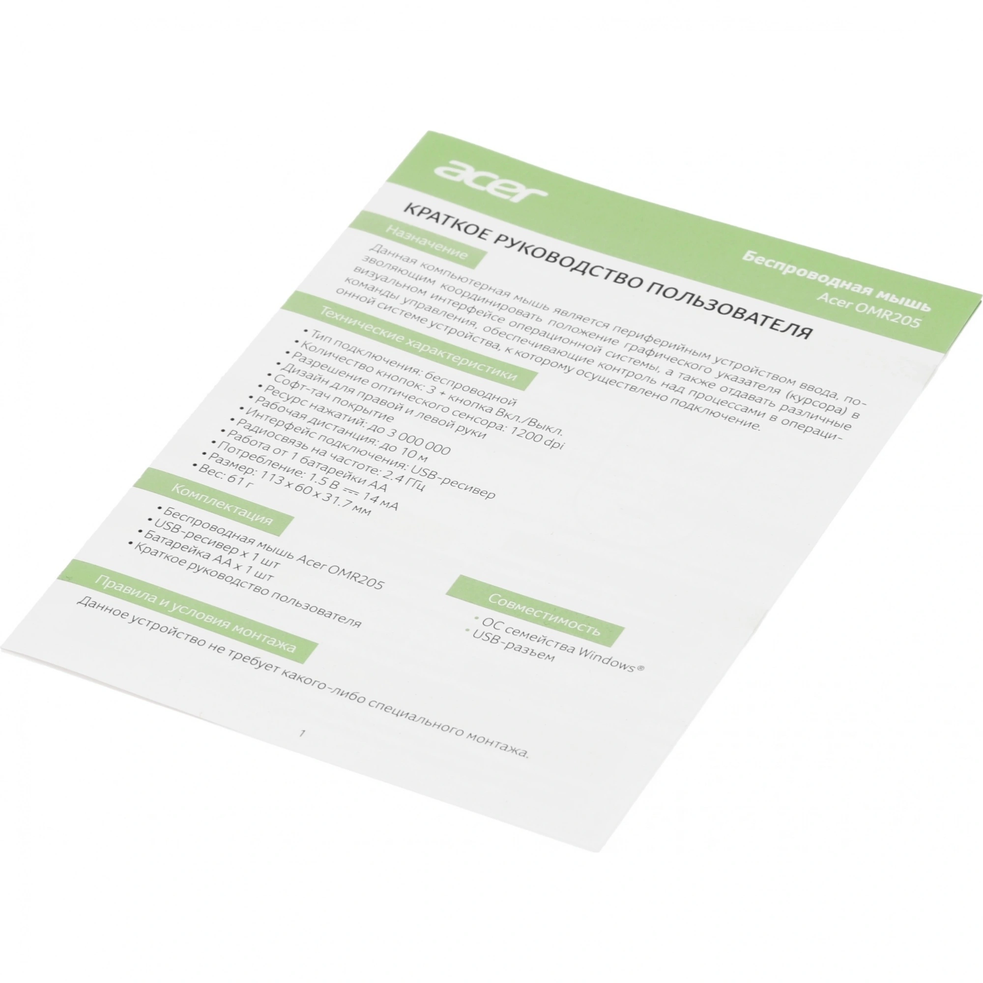 Мышь беспроводная Acer OMR205 – это функциональное устройство, которое станет незаменимым помощником для работы и развлечений. Беспроводное подключение: мышь Acer OMR205 оснащена радиоканалом, что обеспечивает свободу передвижения и отсутствие проводов. Радиус действия беспроводной связи составляет 10 метров, что позволяет комфортно работать на любом расстоянии от компьютера. Оптический сенсор с разрешением 1200 dpi: мышь обеспечивает точное и плавное движение курсора, что важно для комфортной работы с графическими и веб-приложениями. В целом, мышь беспроводная Acer OMR205 – это надежный и функциональный выбор для тех, кто ценит комфорт и удобство в работе.