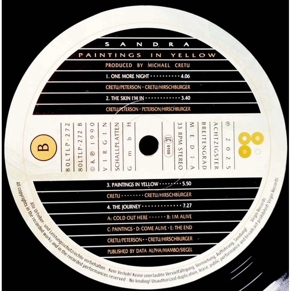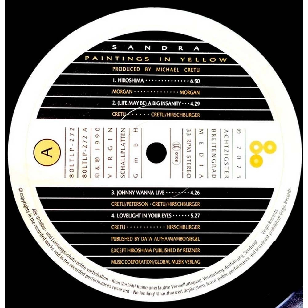 "Paintings In Yellow" - четвертый студийный альбом немецкой певицы Сандры, выпущенный в 1990 году. Альбом был записан в студии A.R.T. Studios, домашней студии Сандры и Майкла Крету на Ибице, Испания. Материал продемонстрировал более зрелое звучание, отойдя от предыдущих быстрых танцевальных песен Сандры в пользу более рефлексивного и утончённого стиля. Фрэнк Петерсон, сопродюсер проекта Enigma, взял на себя роль соавтора некоторых треков для альбома.