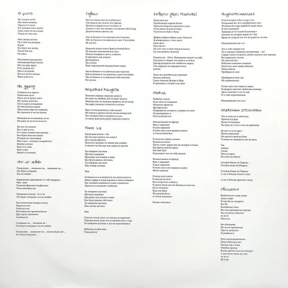 Работа над этой пластинкой началась в 2001 году. Первой записанной для диска песней стала «Обещания», англоязычная версия которой получила название «Lady Alpine Blue». С этой композицией группа «Мумий Тролль» приняла участие в международном музыкальном конкурсе «Евровидение 2001», однако на популярность коллектива это обстоятельство не оказало практически никакого влияния. Разве что в телевизионном эфире группы в какой-то момент было больше, чем прежде.