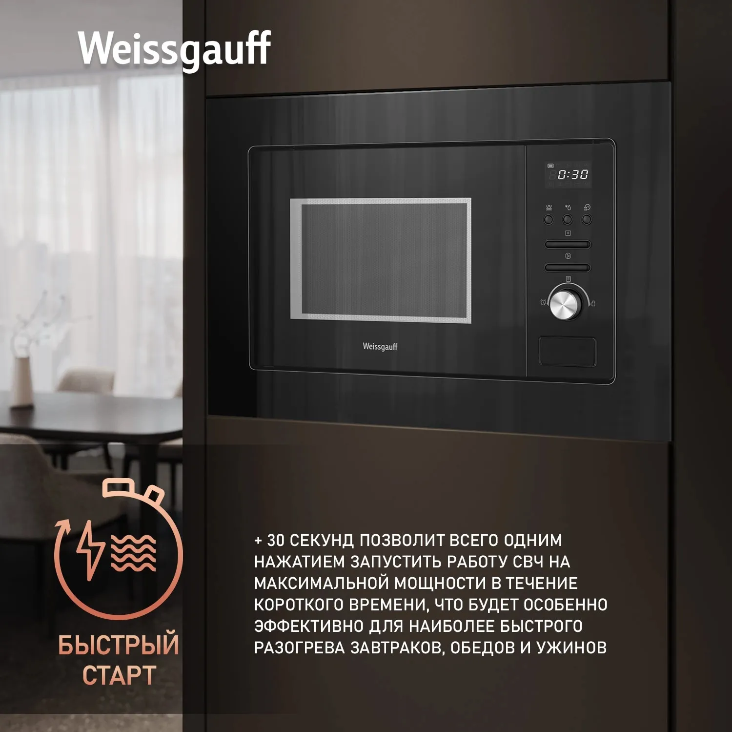 Дизайн, выполненный в черном цвете, станет финальным штрихом в совершенстве великолепного облика этой модели. Каждый раз, взаимодействуя с вашей микроволновой печью от Weissgauff, вы будете чувствовать, что это не только функциональное устройство, но и настоящее украшение вашей кухни!
