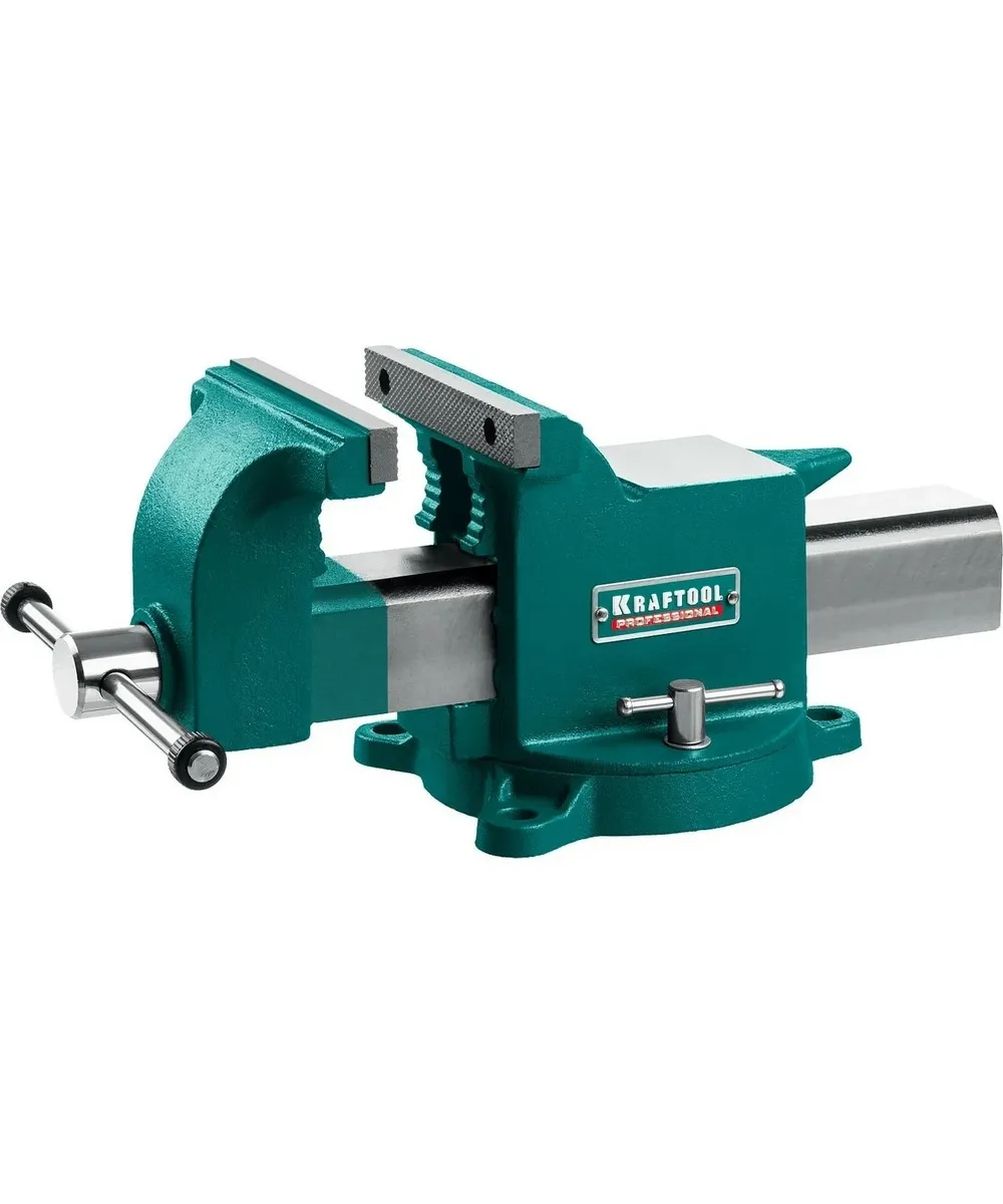 Стальные слесарные тиски KRAFTOOL Steel 150 мм 32701-150- профессиональный инструмент из высококачественной стали и возможностью поворота основания на 360 градусов. Подходит для мастерских широкого профиля.