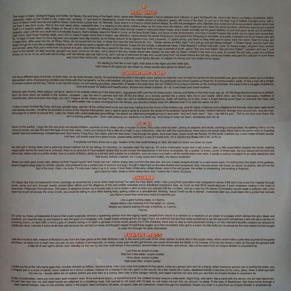 Corn Maze, Tuesday, Save Our Ship, Sword Box, Dog Years, Acid King, Suicide Big Gulp, 1 + 1 = 13, Churro, Purple Moss