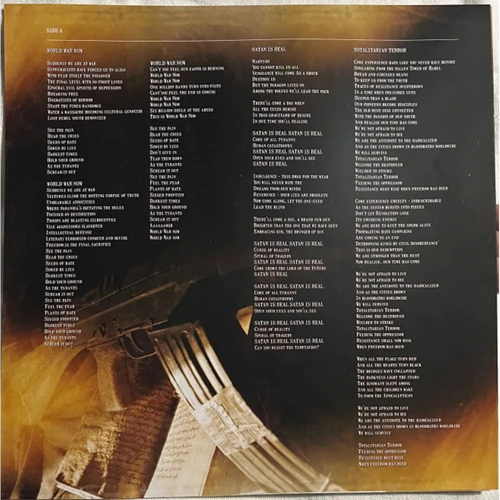 Apocalypticon, World War Now, Satan Is Real, Totalitarian Terror, Gods Of Violence, Army Of Storms, Hail To The Hordes, Lion With Eagle Wings, Fallen Brother, Side By Side, Death Becomes My Light
