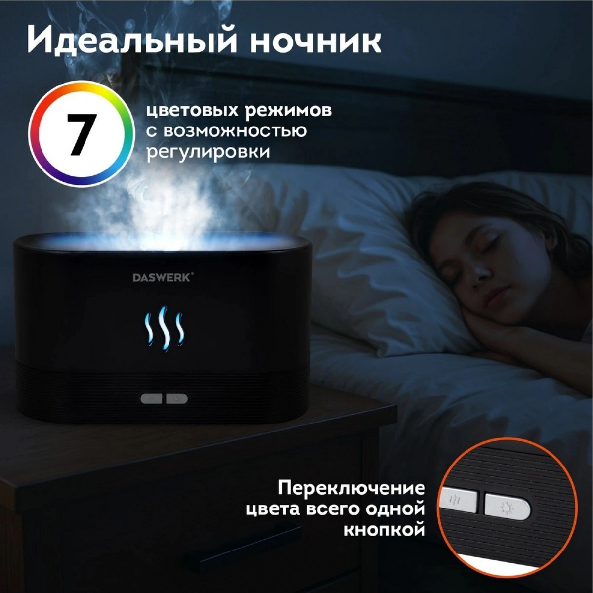Увлажнитель воздуха DASWERK соединяет в себе несколько устройств: увлажнитель, аромадиффузор и ночник.