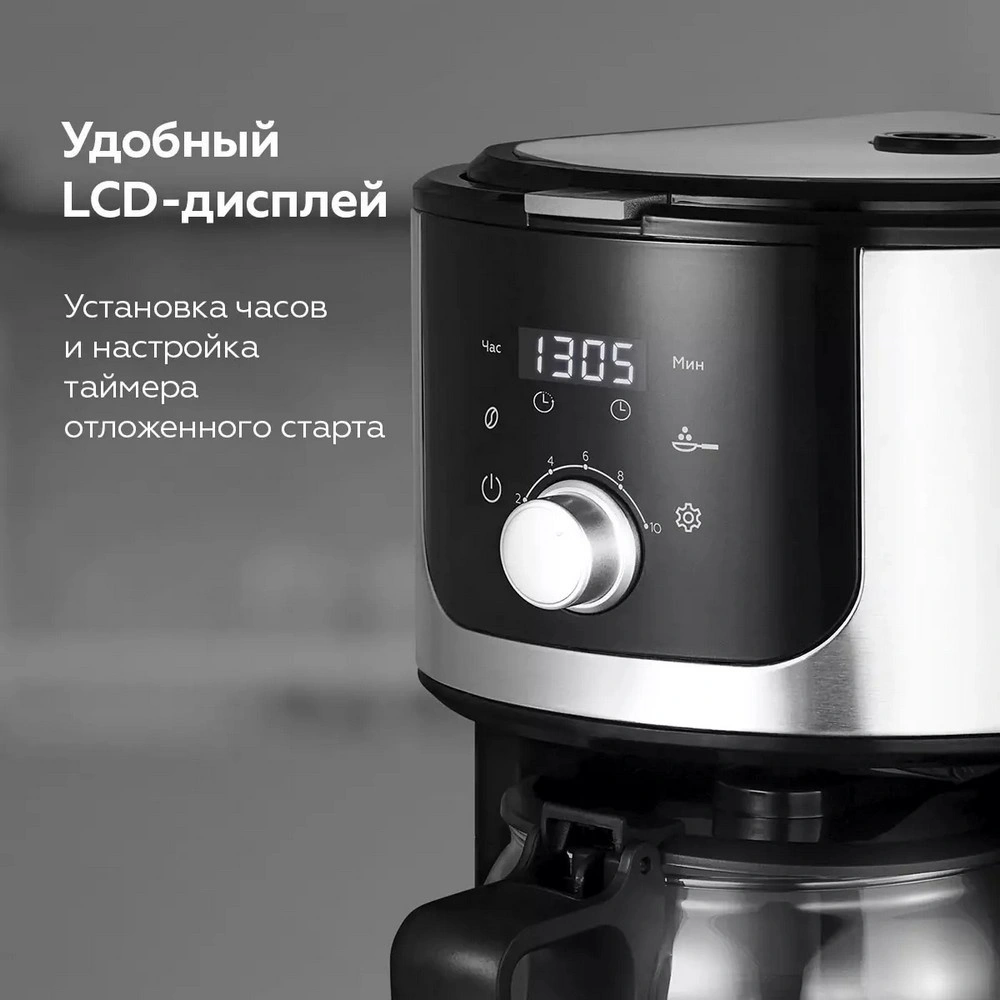 Капельная кофеварка со встроенной кофемолкой BQ CM1010 Черный-Стальной в Санкт-Петербурге