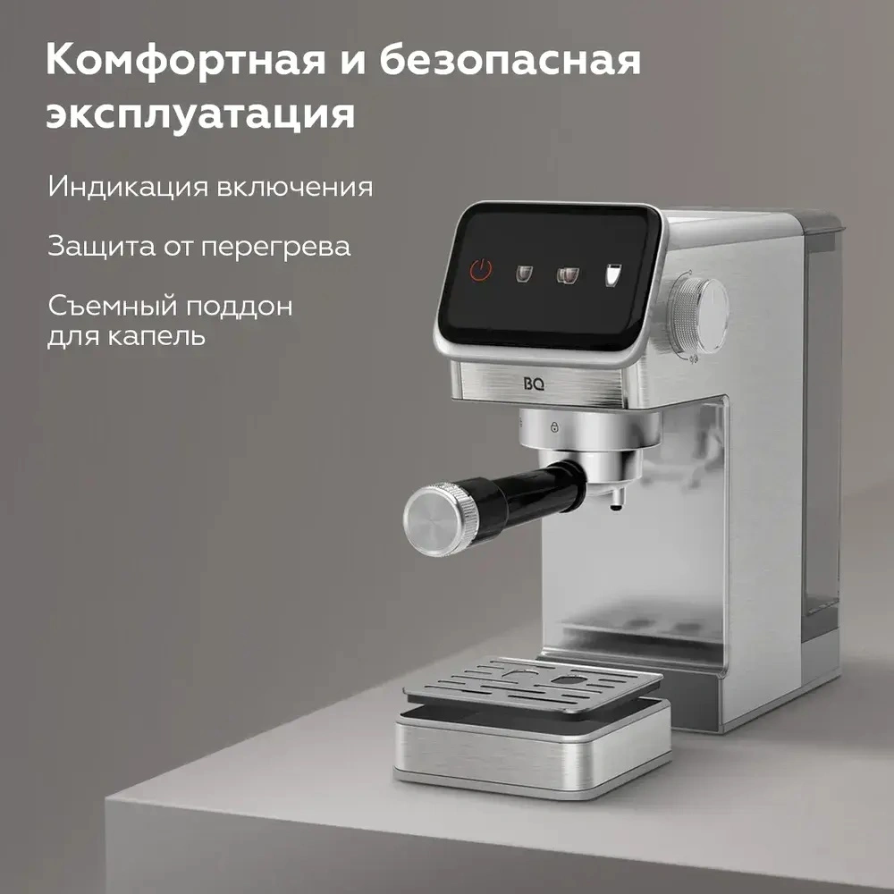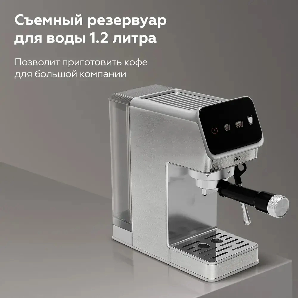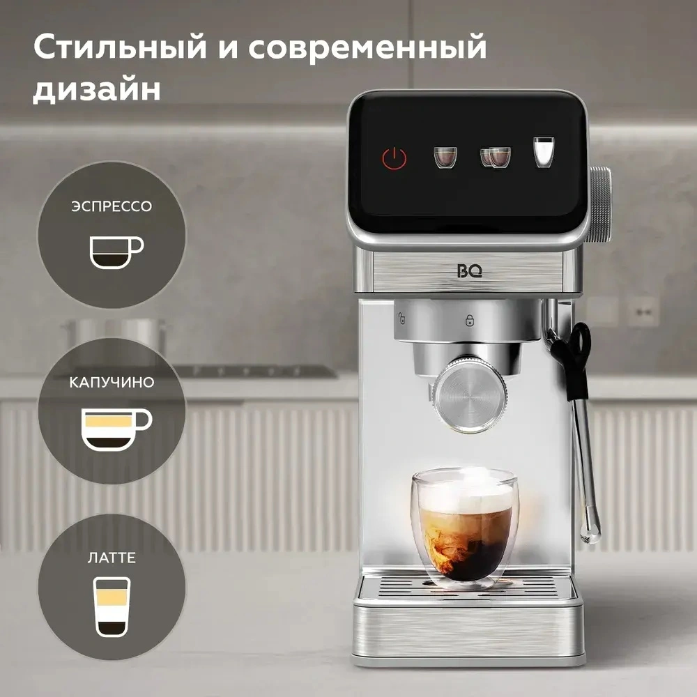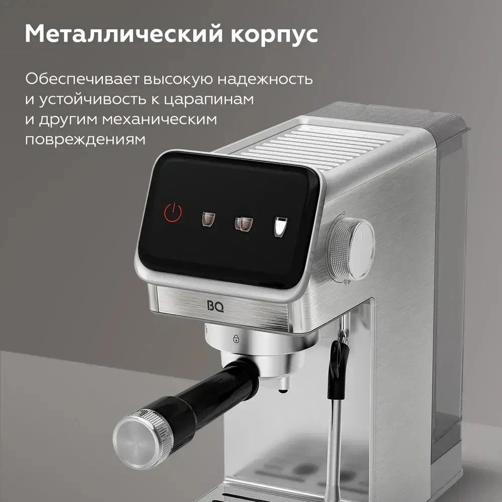 С весом в 3,8 кг, эта модель достаточно устойчива и прочна. Рожковая кофеварка BQ — это надежный и стильный помощник для приготовления самого вкусного кофе на каждый день.