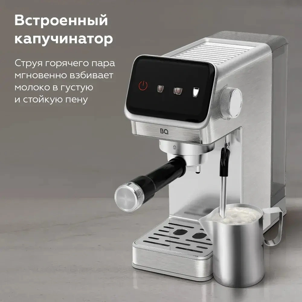 Кофеварка BQ также оборудована функцией подогрева чашек, что позволяет сохранять оптимальную температуру напитка дольше. Не обойтись и без капучинатора, который поможет приготовить нежнейший капучино или латте с пышной пенкой.