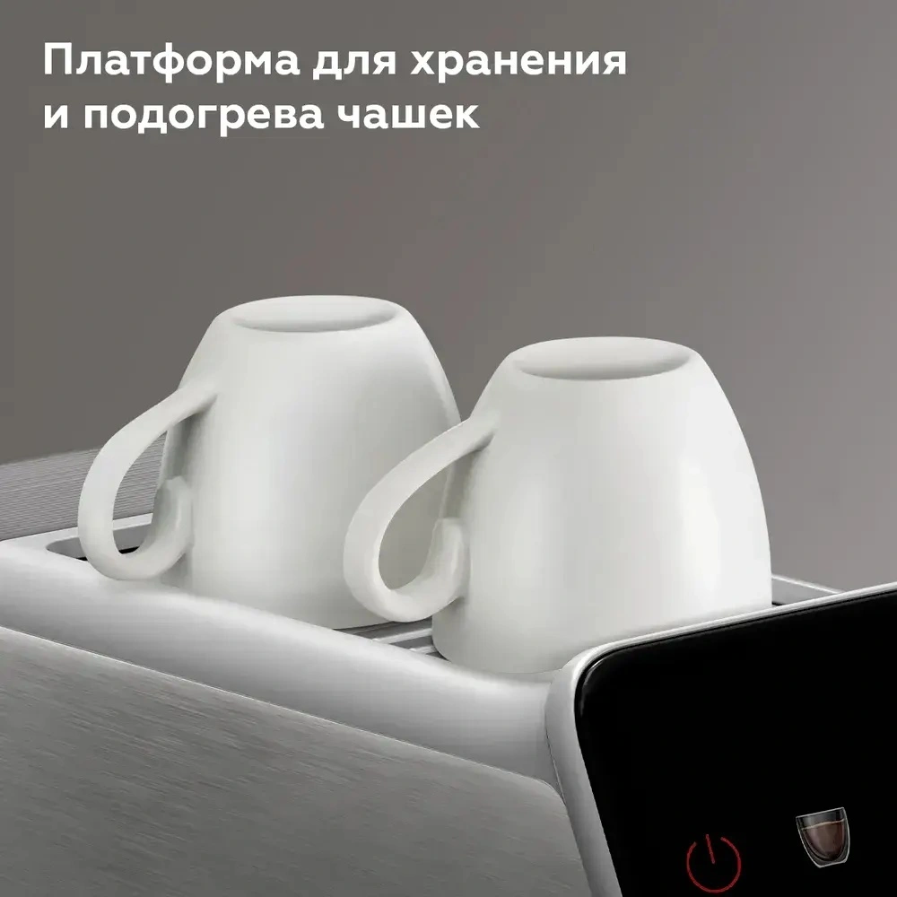 Одним из преимуществ модели является встроенная кофемолка, которая позволяет наслаждаться свежемолотым кофе каждый раз. Объем резервуара для воды составляет 1,2 литра, что достаточно для приготовления нескольких порций без пополнения. Для комфортного использования предусмотрено сенсорное управление, с помощью которого можно легко выбрать необходимые настройки и объем порции.