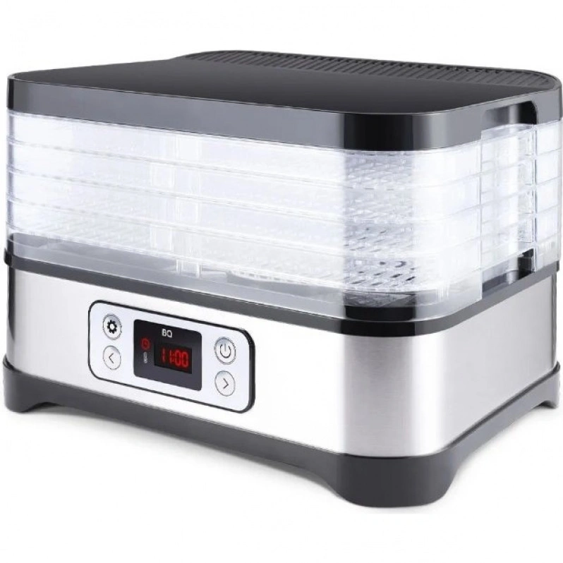 Сушилка для овощей и фруктов BQ — это надежное и эффективное устройство для домашней заготовки продуктов. Сочетая в себе стильный дизайн и практичность, она станет незаменимым помощником на вашей кухне. Корпус сушилки выполнен из прочного металла и пластика в элегантном серебристом и черном цветах, что обеспечивает долговечность и привлекательный внешний вид.