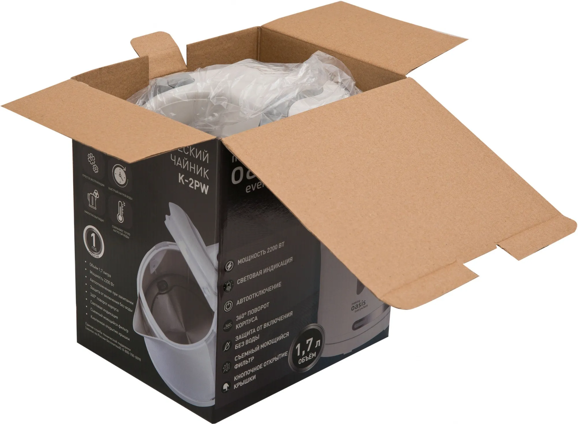 Чайник электрический Oasis K-2PW - по цене 1447 руб. в Санкт-Петербурге. Приобрести товар можно в интернет-магазине КотоФото на сайте, либо по телефону 8(812)426-98-99 в Санкт-Петербурге. Информация о характеристиках и описании указана в карточке товара.