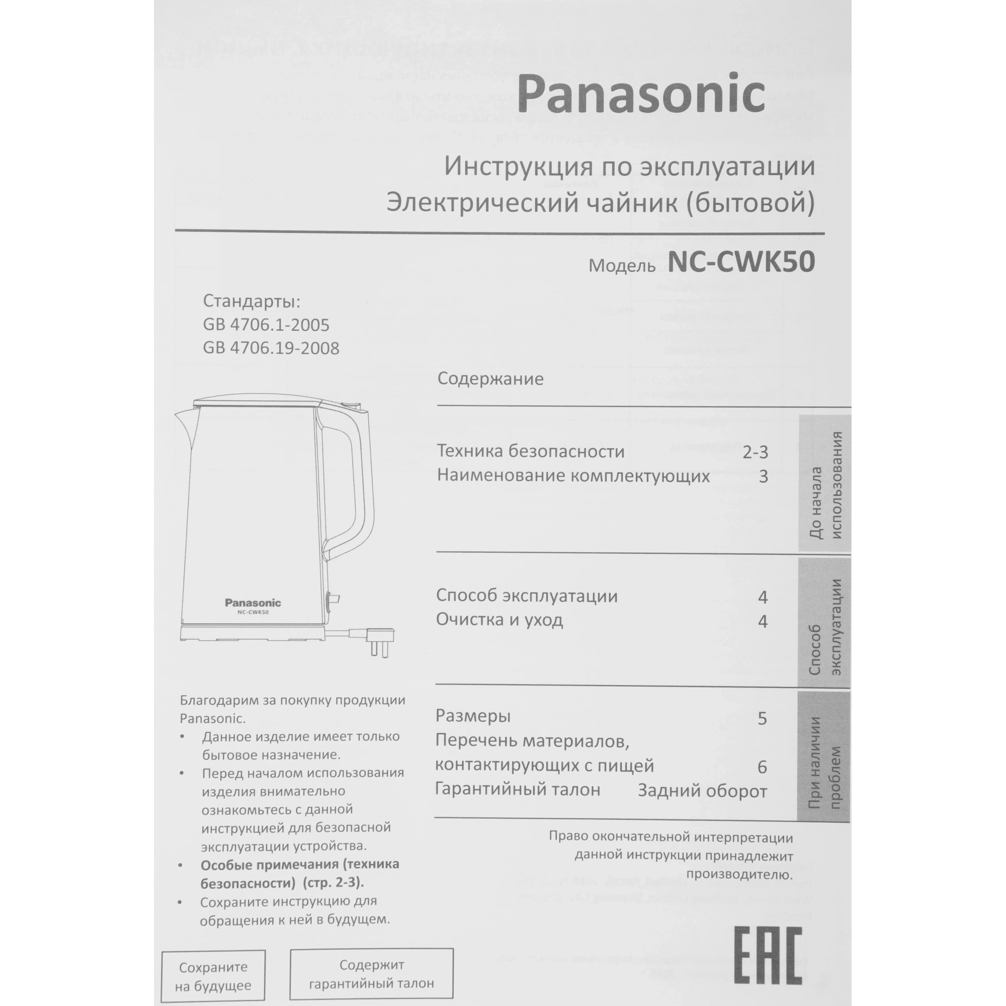 Отзывы о товаре Чайник электрический Panasonic NC-CWK50