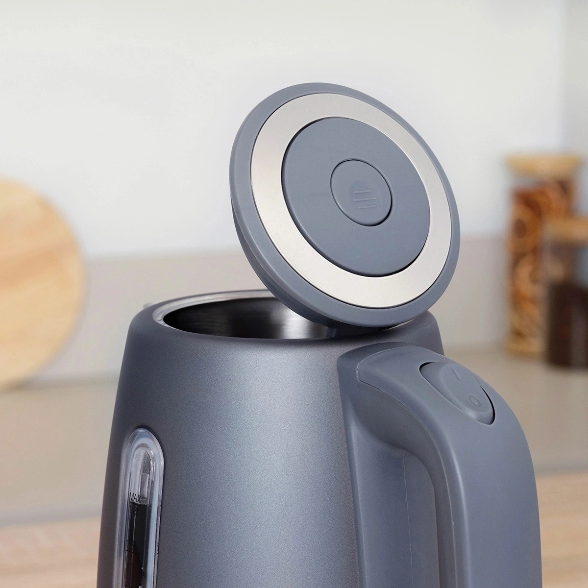 Scarlett SC-EK21S42 – электрический чайник мощностью 1800 Вт и объемом 1.8 л оснащён автоматической системой открывания крышки.