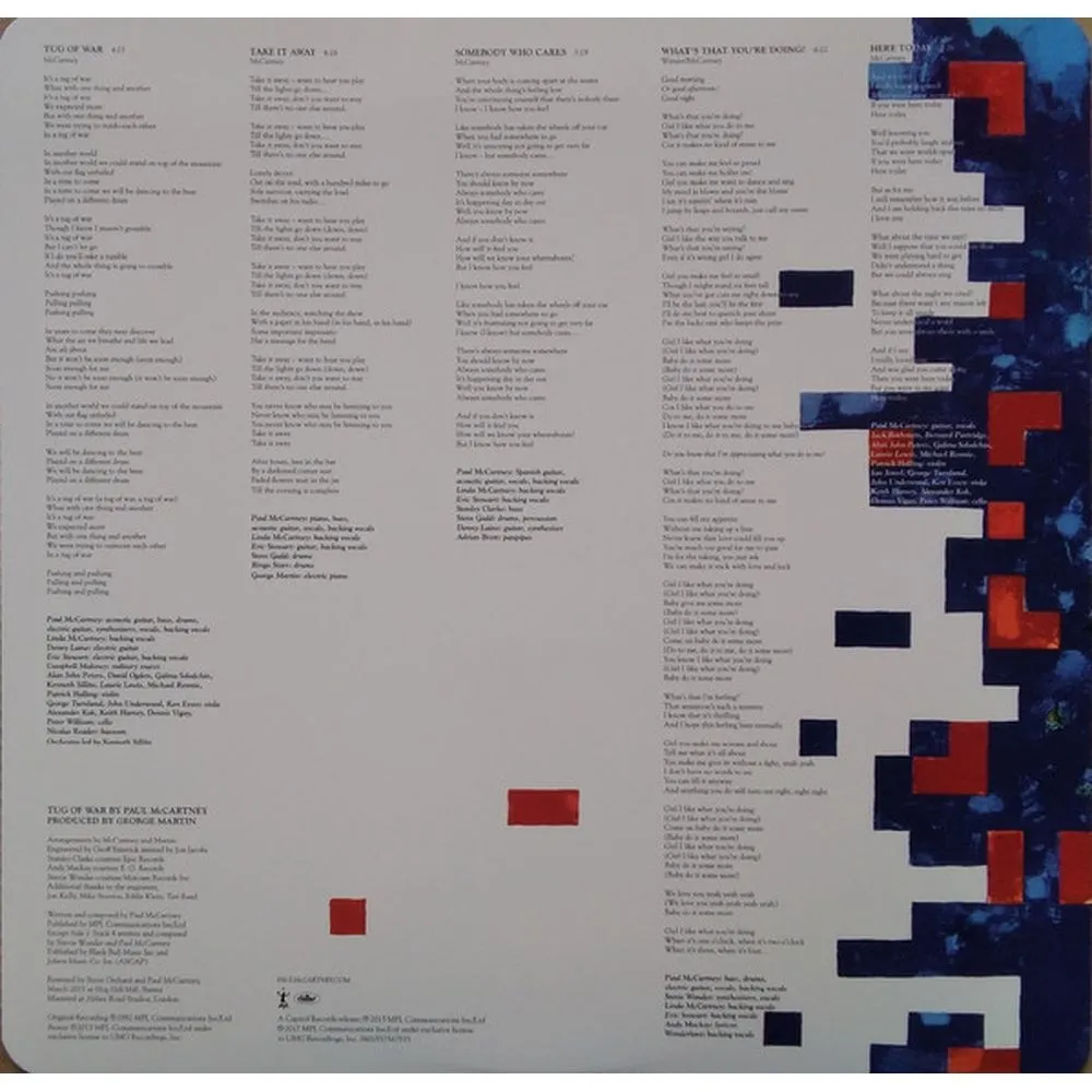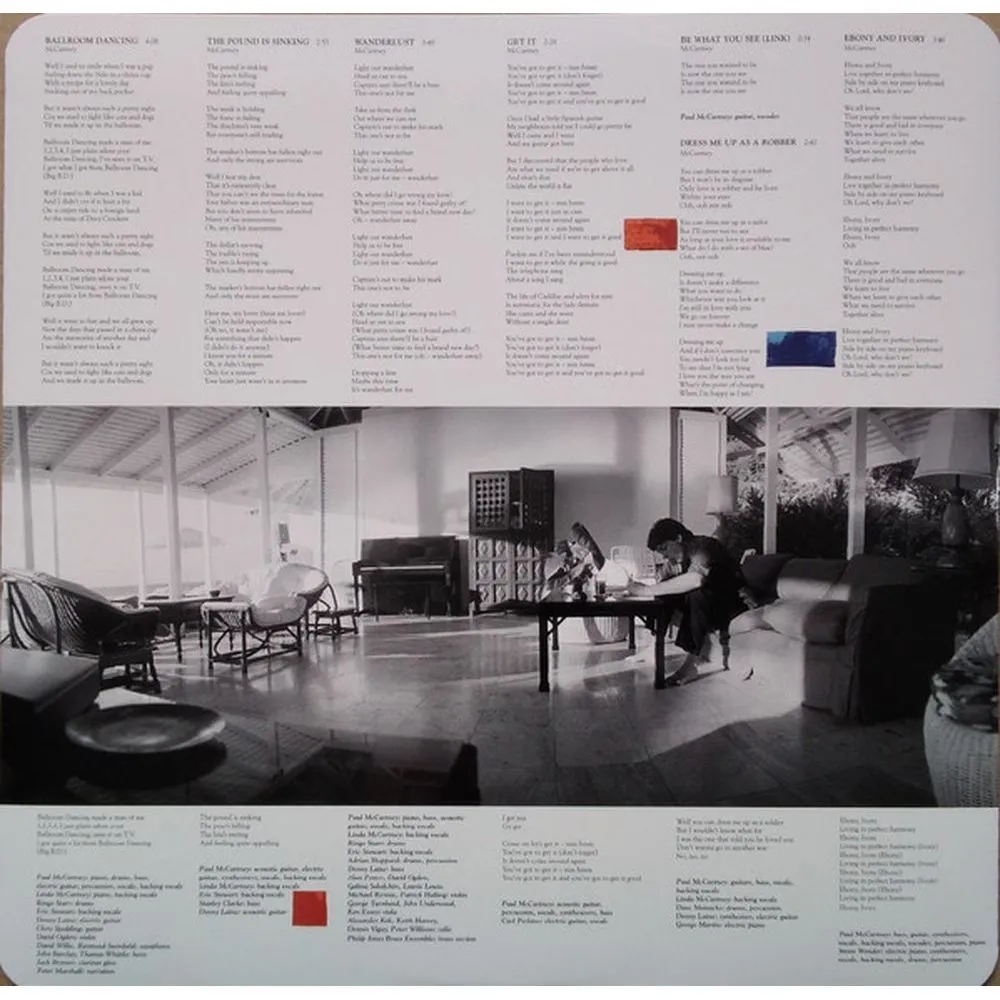Лицензионное издание, выпущенное на виниле. В альбом вошли следующие композиции: Tug Of War, Take It Away, Somebody Who Cares, What's That You're Doing?, Here Today, Ballroom Dancing, The Pound Is Sinking, Wanderlust, Get It, Be What You See (Link), Dress Me Up As A Robber, Ebony And Ivory