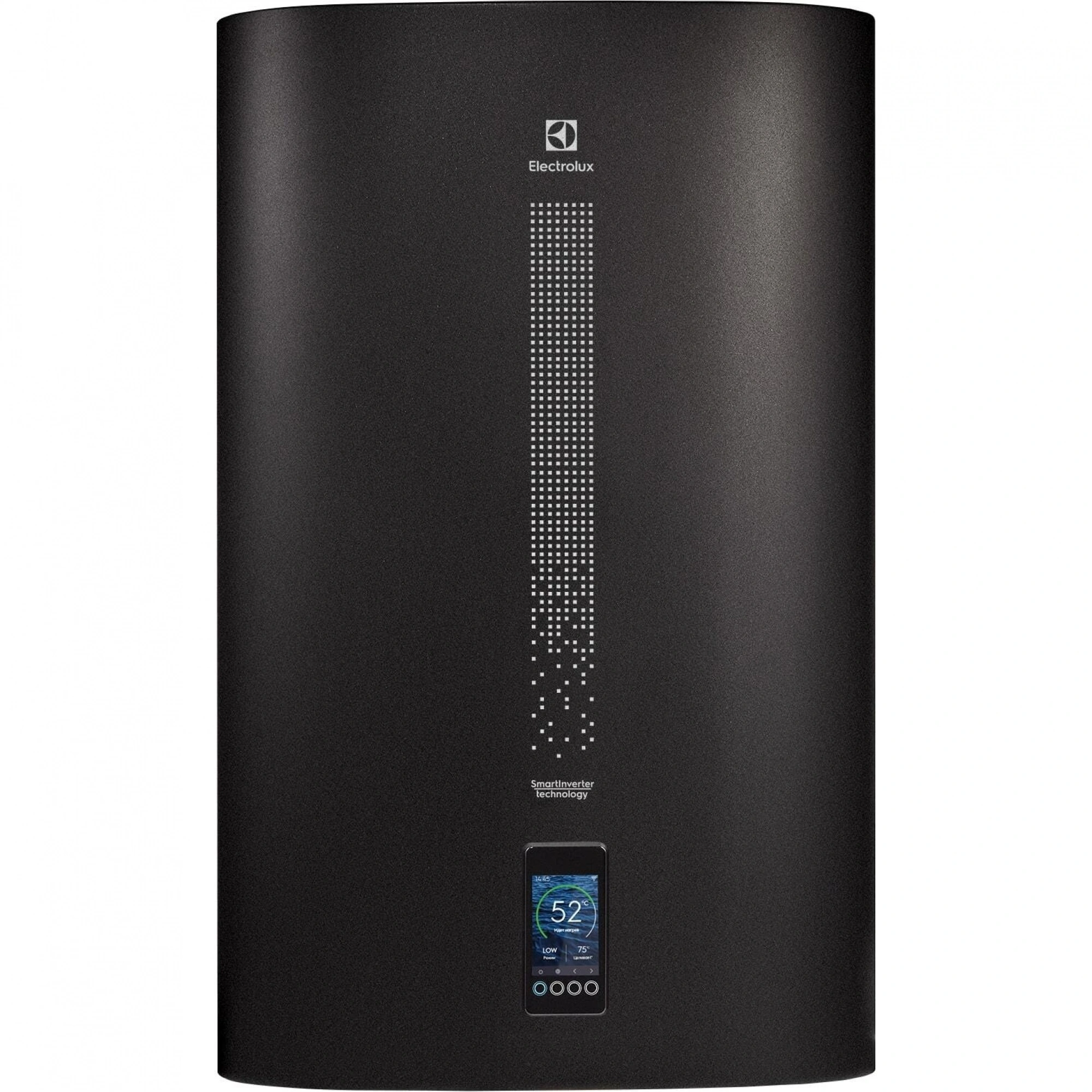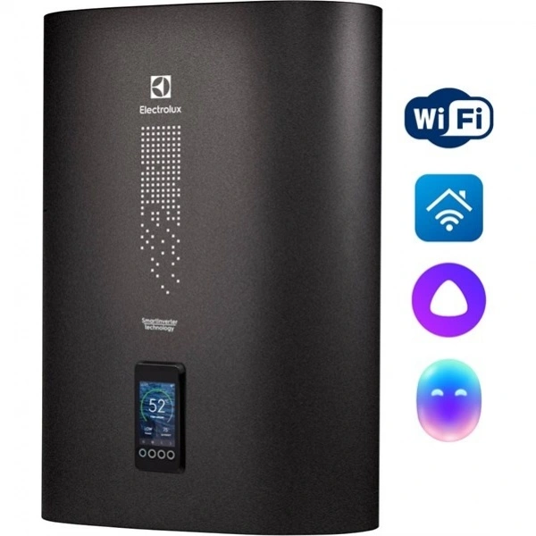 Electrolux серии EWH SmartInverter электрический накопительный водонагреватель с внутренним баком из нержавеющей стали, инверторным управлением и максимальным классом энергоэффективности - C.Уникальная технология впервые реализованная в водонагревателях, направлена на снижение нагрузки на электрическую сеть и ТЭНы благодаря автоматическому изменению мощности ТЭНов. Другим словами ТЭНы сами подстраиваются и подогревают воду внутри водонагревателя на такой мощности, которая в данный отрезок времени объективно необходима. Благодаря этой технологии экономится и электроэнергия и ресурс работы нагревательных элементов, так как ТЭНы больше не работают на полную, когда это не нужно!Это технология запоминаний привычек пользователя.После первых 7 дней знакомства водонагревателя с Вашими привычками Вы можете больше не задумываться о управлении водонагревателя, прибор на основе вашего использования до этого составит алгоритм по которому в дальнейшем будет работать — он сам решит, когда ему необходимо подготовить для Вас горячую воду.Водонагреватели серии оснащены активным анодом (Электронным анодом). Анод представляет собой титановый стержень и обеспечивает защиту от коррозии всегда, когда водонагреватель подключен к сети электропитания.Электронный анод не требует замены, ежегодного сервисного обслуживания и увеличивает защиту внутренних стенок водонагревателя от коррозии в десятки раз.SmartInverter совместим с беспроводной портативной колонкой Electrolux Mini beat.Подключение к Wi-Fi дает возможность удаленного управления нагревом воды из любой точки мира. Это позволит не только нагреть воду к вашему приходу до необходимой температуры, но и значительно сэкономить затраты на электроэнергию.Система «СУХИХ» ТЭНов – «X-HEAT» - это система при которой нагревательные элемента, которые не имеют прямого контакта с водой. ТЭНы располагаются в специальных металлических кожухах, закрепленных на фланце в нижней части бака, что ограничивает образование накипи на ТЭНах и значительно увеличивает ресурс их работы.Система профессиональной антибактериальной обработки воды Bacteria Stop System – цикл термических обработок(нагрев до 70°С) воды внутри водонагревателя при которых погибают вегетативные формы микроорганизмов, находящиеся в воде и активно размножающиеся при долгом неиспользовании прибора.Автоматическое поддержание температуры в баке не ниже +4°С.EWH SmartInverter имеет многоступенчатую систему безопасности. Специальный термостат не дает воде нагреться выше 75°C. Предохранительный сливной клапан уберегает прибор от избыточного давления, а Устройство Защитного Отключения на электрическом кабеле – от утечки электричества.Внутренний бак изготовлен из высококачественной нержавеющей стали с высоким содержанием антикоррозионных легирующих элементов, таких как хром и никель. Сталь с такими характеристиками более устойчива к коррозии и технологична при обработке, что обеспечивает долговечность и высокую надежность работы водонагревателей.При производстве внутренних баков водонагревателя применяется полностью автоматическая аргонная сварка нового поколения, что позволяет полностью избежать дефектов, связанных с ручным производством, гарантирует безупречное качество сварочных швов и коррозионную стойкость в период эксплуатации. Каждый водонагре