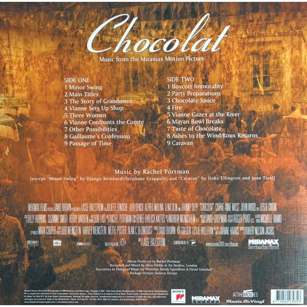Лицензионное издание, выпущенное на виниле. В альбом вошли следующие композиции: Minor Swing, Main Titles, The Story Of Grandmere, Vianne Sets Up Shop, Three Woman, Vianne Confronts The Comte, Other Possibilites, Guillaume's Confession, Passage Of Time, Boycott Immorality, Party Preparations, Chocolate Sauce, Fire, Vianne Gazes At The River, Mayan Bowl Breaks, Taste Of Chocolate, Ashes To The Wind / Roux Returns, Caravan