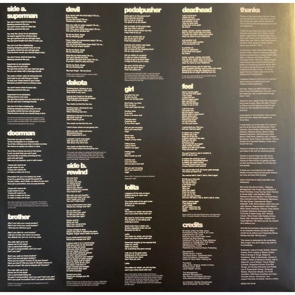 Superman, Doorman, Brother, Devil, Dakota, Rewind, Pedalpusher, Girl, Lolita, Deadhead, Feel