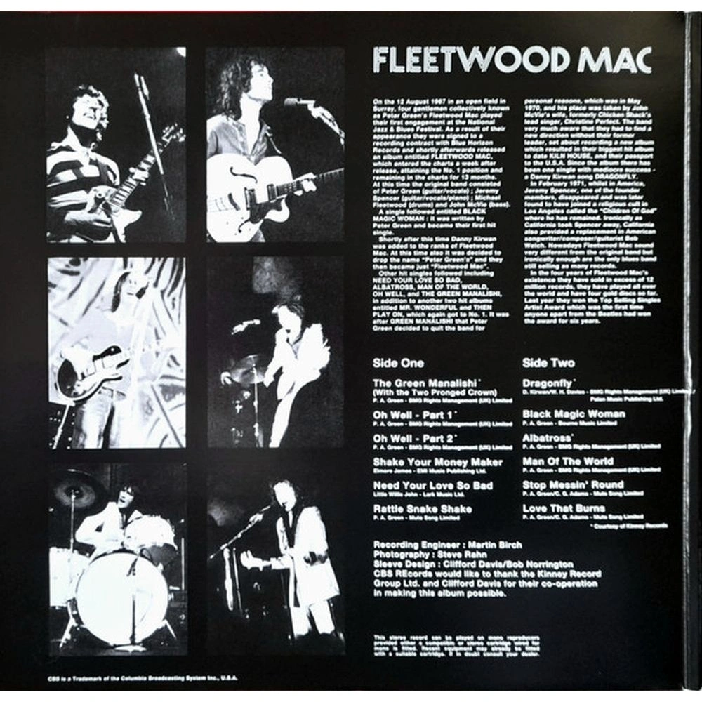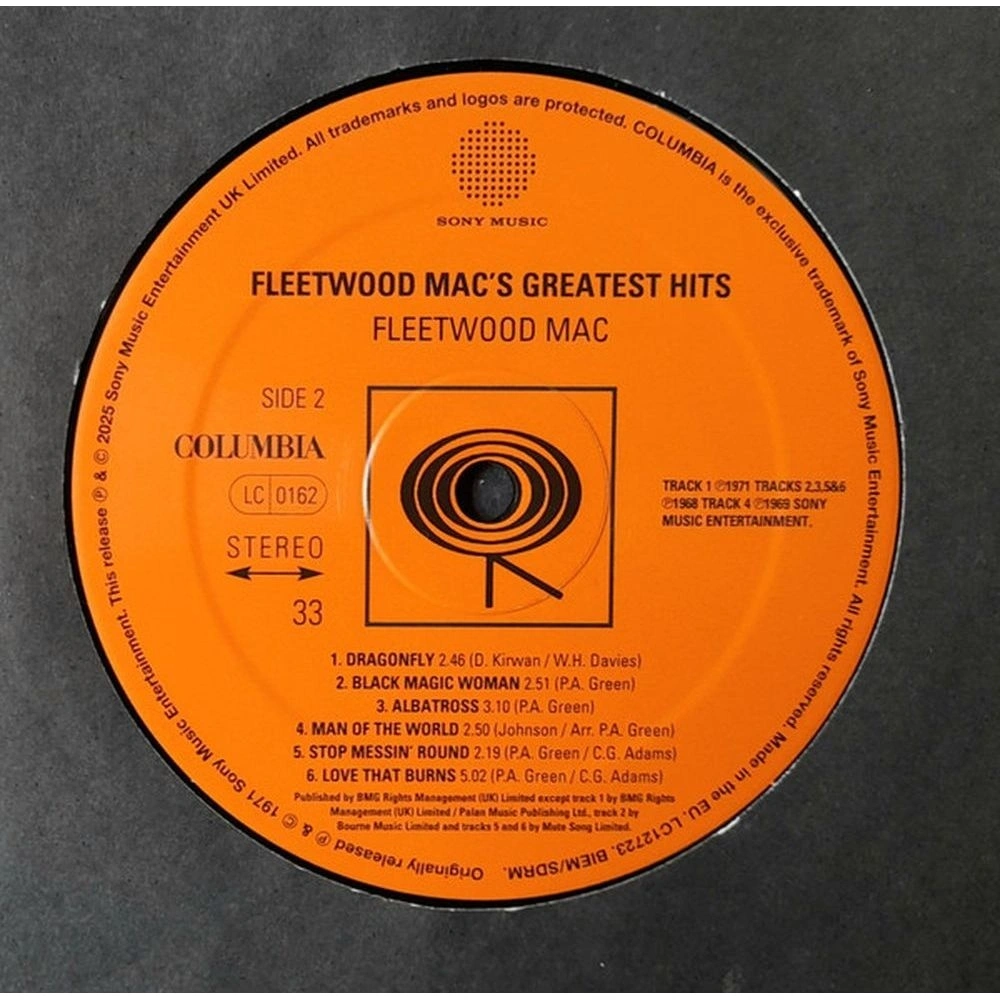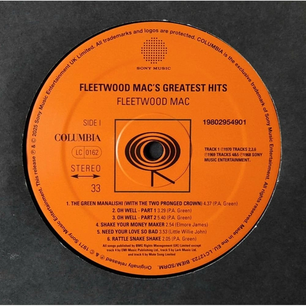 Greatest Hits — альбом главных хитов британо-американской рок- группы Fleetwood Mac, выпущенный в 1988 году. Он охватывает период наибольшего коммерческого успеха группы — с середины 1970-х до конца 1980-х годов. Издание на виниле. Группа Fleetwood Mac (первоначально Fleetwood Mac Питера Грина) была образована в 1967 году после ухода Грина из Bluesbreakers Джона Мейолла. Взяв с собой ритм-секцию Мика Флитвуда и Джона Макви, Грин назвал новый коллектив в их честь, поскольку хотел, чтобы группа сохранила свою самобытность и после его участия. При поддержке двух других талантливых музыкантов, Джереми Спенсера и Дэнни Кирвана, группа сразу же заявила о себе, записав несколько успешных блюзовых композиций на лейбле Майка Вернона Blue Horizon, а затем расширила свою деятельность и выпустила несколько превосходных и невероятно успешных рок-песен и инструментальных композиций. Грин возглавлял группу менее трех лет, покинув ее в мае 1970 года, но за это время, как задокументировано в этом великолепном сборнике, он создал некоторые из лучших музыкальных произведений той эпохи, включая признанную классику, такую ??как «Albatross», «Black Magic Woman», «Oh Well» и душераздирающе прекрасную «Man of the World».