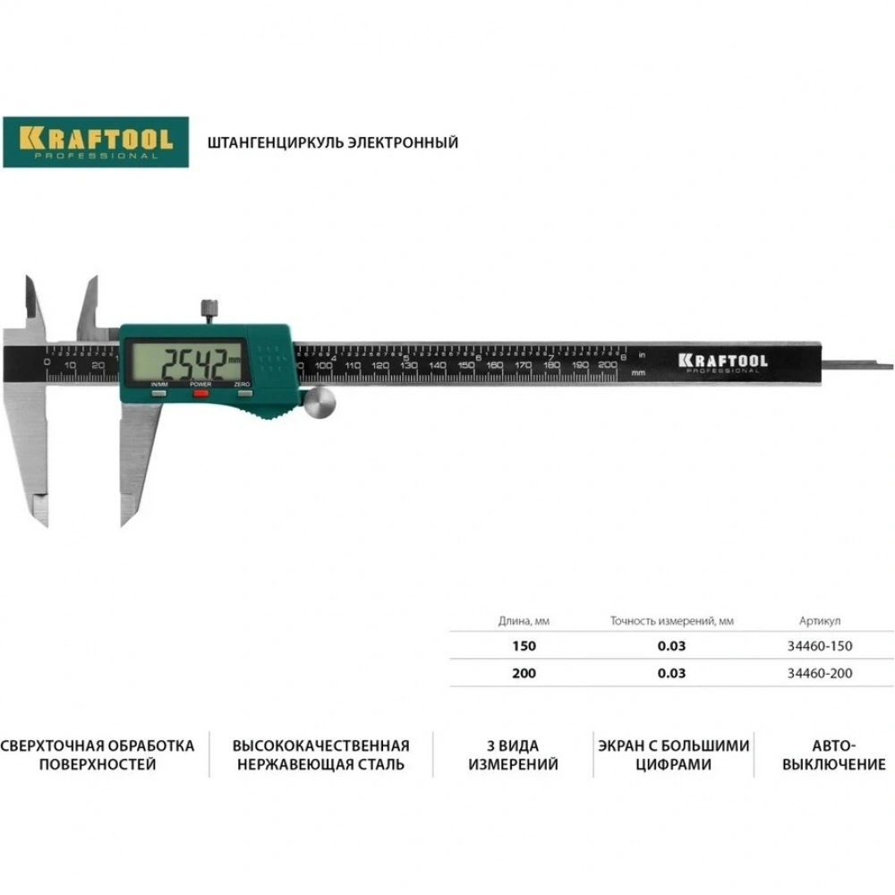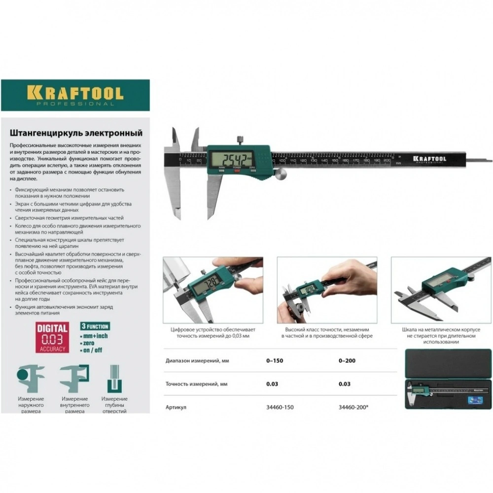 Штангенциркуль электронный высокоточный, металлический KRAFTOOL 150 мм, (34460-150) - по цене 4158 руб. в Санкт-Петербурге. Приобрести товар можно в интернет-магазине КотоФото на сайте, либо по телефону 8(812)426-98-99 в Санкт-Петербурге. Информация о характеристиках и описании указана в карточке товара.