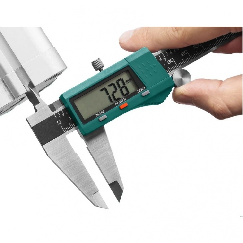 Электронный штангенциркуль 150мм KRAFTOOL 34460-150 применяется для высокоточного измерения различных размеров. С помощью данного штангенциркуля можно проводить операции вслепую, а также, измерять абсолютные отклонения от заданного размера с помощью функции обнуления на дисплее.
