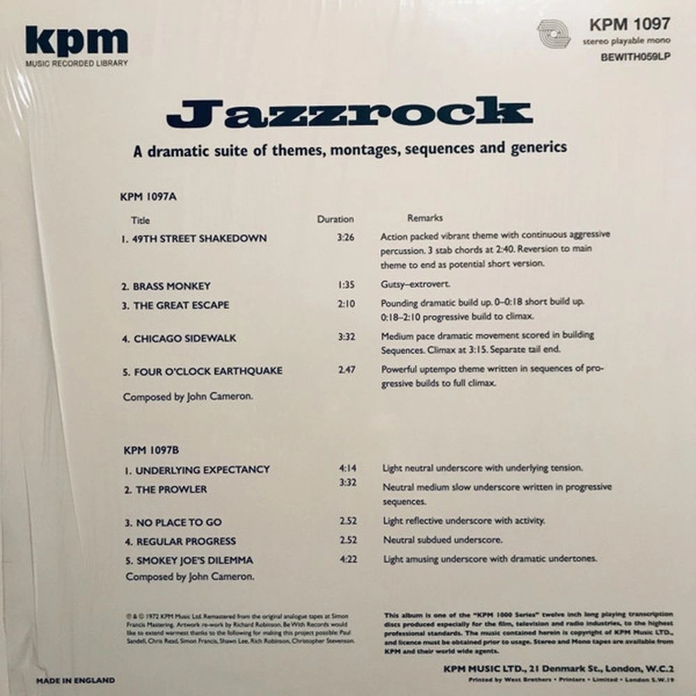 Компания Be With обратилась к архивам KPM, чтобы переиздать еще один любимый альбом из серии KPM 1000. «Jazzrock» — это агрессивный, насыщенный перкуссией альбом с потрясающей энергией. Множество брейков и ритмов, электропианино, басовые петли и мощная перкуссия. Фанковый джаз с глубоким, энергичным саундтреком. Драматическая сюита тем, монтажей, секвенций и различных элементов.