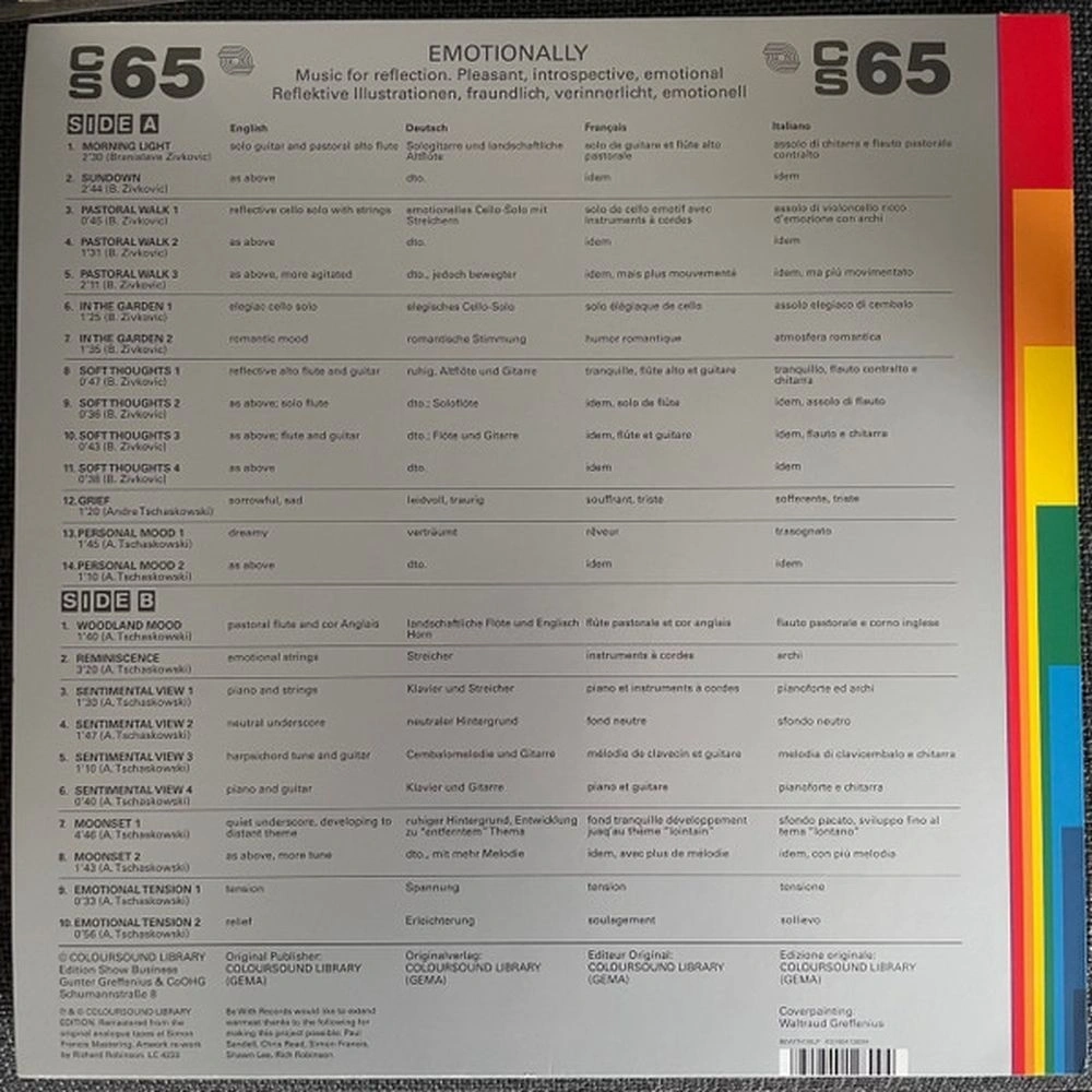 Созданный в эмоциональном плане Браниславом Живковичем и Андре Часковским в 1986 году для Coloursound, этот альбом, пожалуй, является самым красивым из когда-либо созданных библиотечных альбомов. Шедевр от начала до конца, представляющий собой мощную мелодичную музыку для размышлений и самоанализа. Он действительно глубоко эмоционален. Поклонникам линчевской мрачной драмы, саундтрека Рая Кудера к фильмам «Париж, Техас» и «Колонна Дюрутти» обязательно стоит обратить на него внимание. Бранислав Живкович написал большую часть композиции на стороне А. Открывающая композиция «Утренний свет» точно передает это чувство, с великолепным и проникновенным соло на акустической гитаре, сочетающимся с альтовой флейтой, создавая потрясающий эффект. Его непосредственный контрапункт, "Sundown", не менее захватывающий, но несёт в себе ночную драму почти линчевских масштабов, снова используя гитару и флейту, но с чуть более меланхоличным, даже зловещим оттенком, также напоминающим музыку Рая Кудера к фильму "Париж, Техас". По-настоящему завораживает появление струнных. Замечательно. Задумчивое соло на виолончели с нарастающими струнными в сердце "Pastoral Walk 1" подтверждает меткость названия трека, а части 2 и 3 добавляют ещё больше напряжения — с помощью клавишных и перкуссионных элементов — с великолепным эффектом. "In The Garden 1" представляет собой элегическое соло на виолончели, а его вторая часть усиливает романтику. Четырехчастная сюита "Soft Thoughts" приглашает к дальнейшей интроспекции с помощью задумчивой альтовой флейты и гитары.