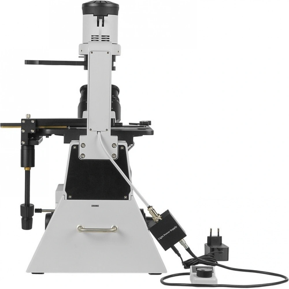 Микроскоп оснащен осветителем проходящего света на светодиоде теплого белого света 3 Вт снабженного конденсором N.A.=0.30 с апертурной диафрагмой и слотами для цветных светофильтров и фазового слайдера. Рабочее расстояние конденсора составляет 72 мм, что способствует исследованиям объектов в лабораторной посуде. При необходимости исследования особо крупных объектов, рабочее расстояние может быть увеличено до 150 мм с ухудшением качества освещения. Для этого требуется удалить конденсор, имеющий съемную конструкцию. Для питания осветителя предназначен внешний блок стабилизированного питания постоянного тока.