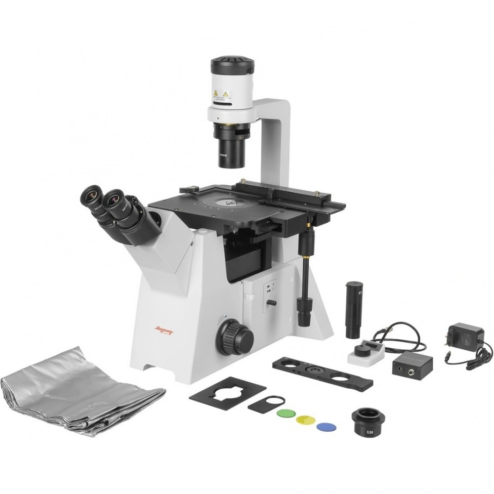 Все объективы скорректированы на бесконечность, имеют увеличенное рабочее расстояние и допускают исследования в лабораторной посуде с толщиной дна до 1,1 мм. На оптические детали нанесено многослойное антирефлексное и антигрибковое покрытие, позволяющее без ограничений использовать микроскоп в биологических лабораториях. Объективы микроскопа установлены на револьверном устройстве, рассчитанном на 5 объективов.