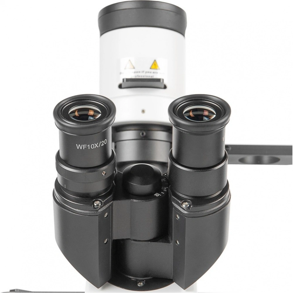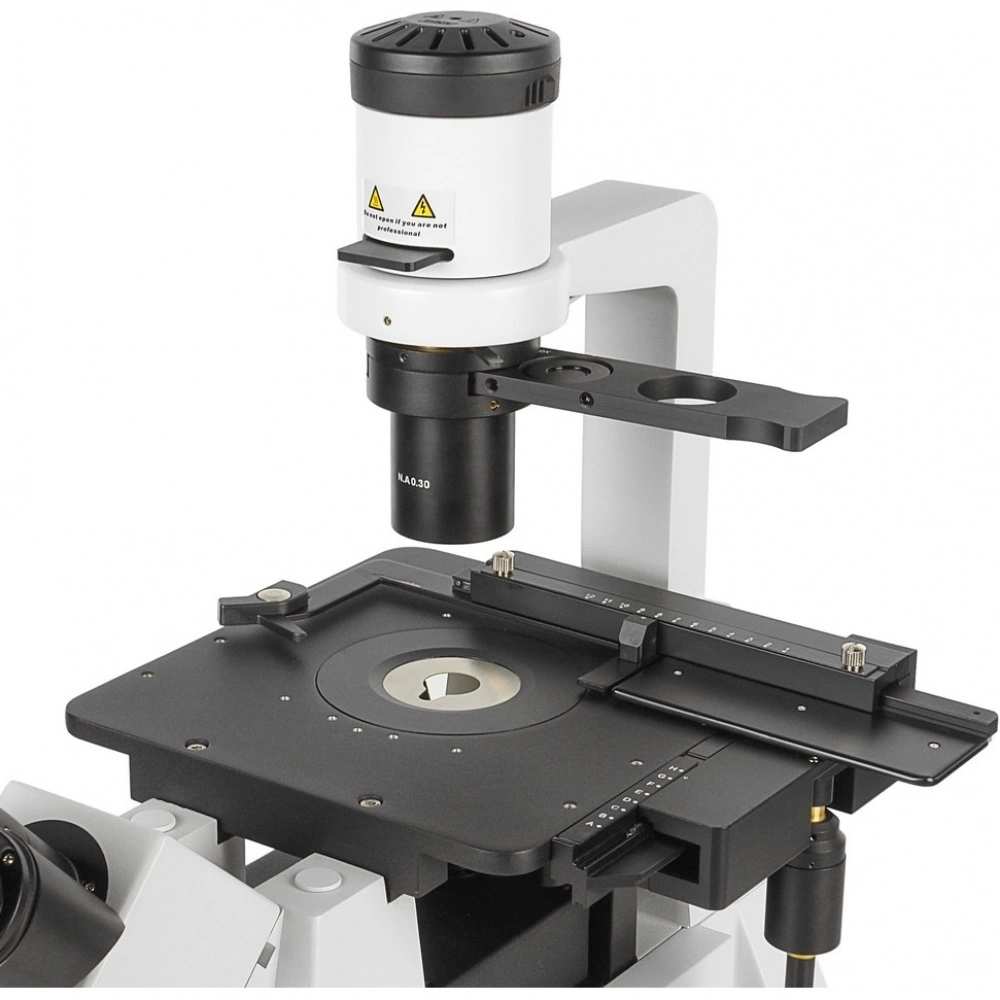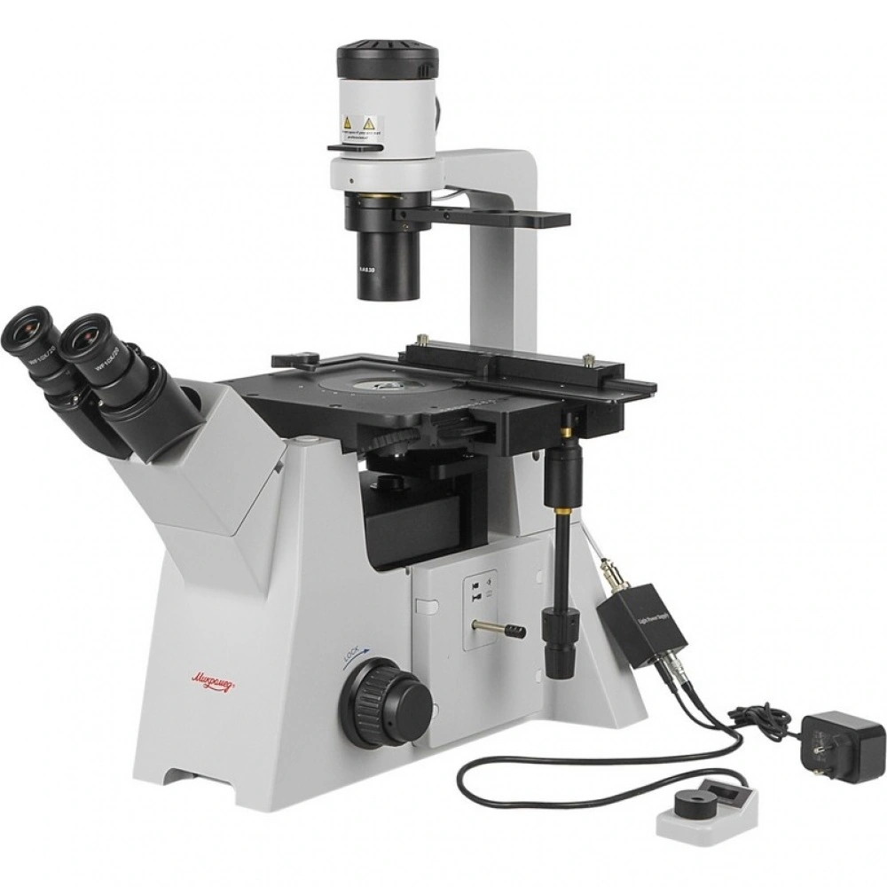 Микроскоп построен по оптической схеме «бесконечность» и включает визуальную насадку типа ICO Infinitive с окулярными тубусами, независимый оптический канал визуализации, объективы и конденсорный осветитель проходящего света, предназначенный как для работы методом светлого поля, так и методом фазового контраста.