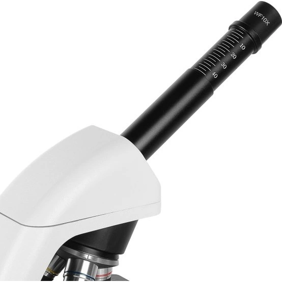 В комплекте микроскопа окуляры широкого поля WF10х, WF16х и WF20х с ними увеличение микроскопа составляет 400х и 800х, а при использовании линзы Барлоу и объектива 40х до 1600х.