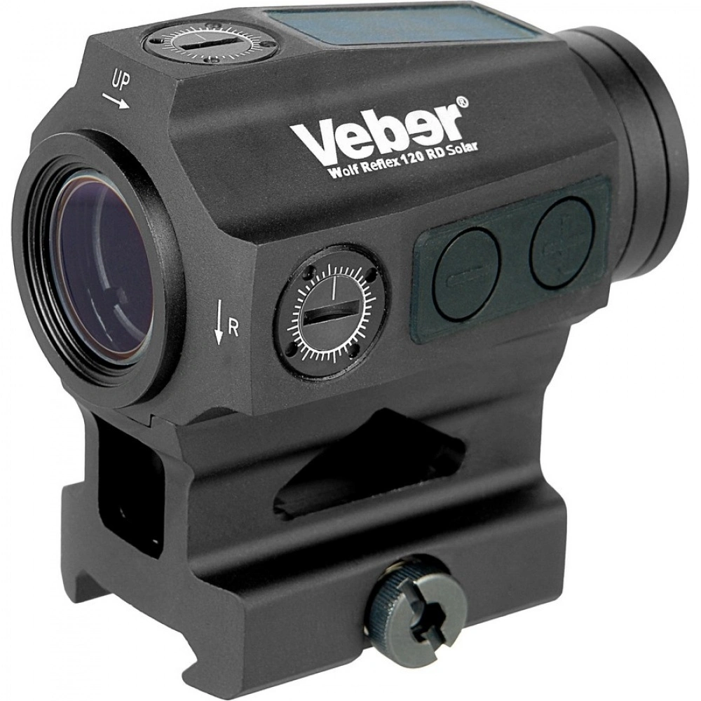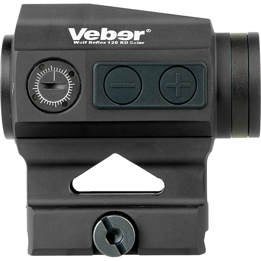 Veber Wolf Reflex 120 RD Solar – тактический коллиматорный прицел закрытого типа с увеличением 1х и объективом диаметром 20 мм. Прицельная марка Red Dot имеет 12 ступеней регулировки подсветки, которая питается от батареи / солнечной панели.