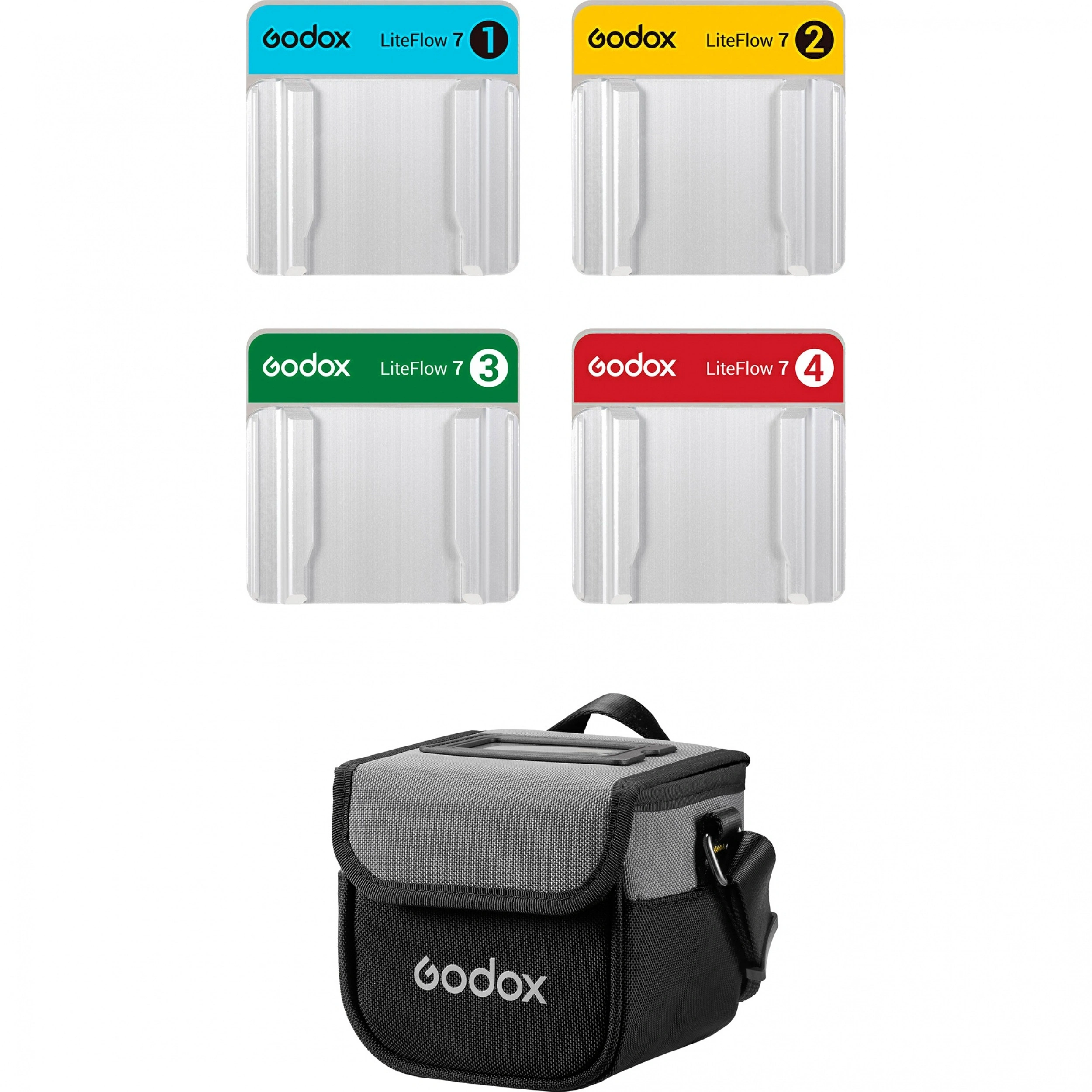 Godox Knowled LiteFlow 7 Kit – комплект кино-рефлекторов, который включает 4 зеркальных отражателя размером 7х7 см с разной степенью рассеивания света. Набор поставляется в мягком кейсе для переноски и хранения.