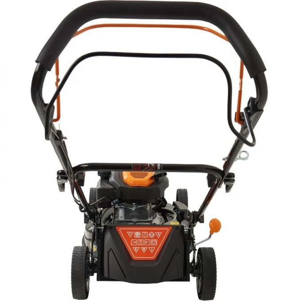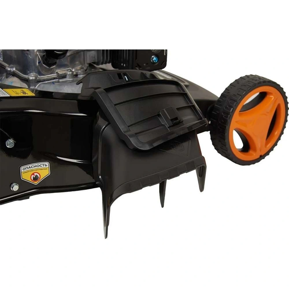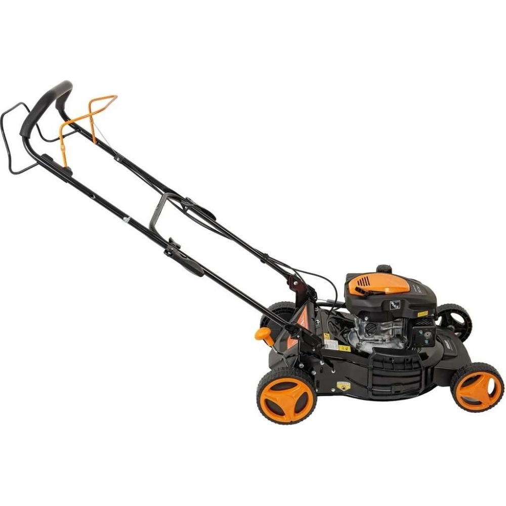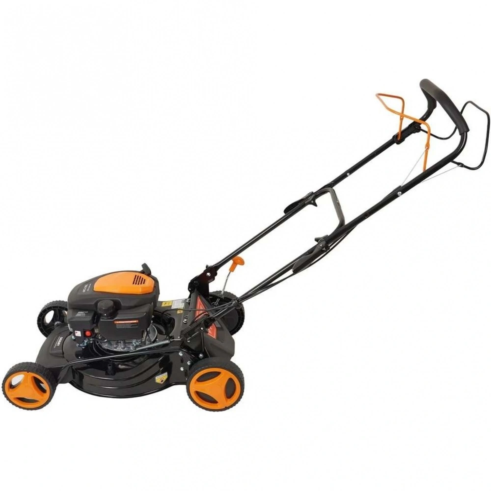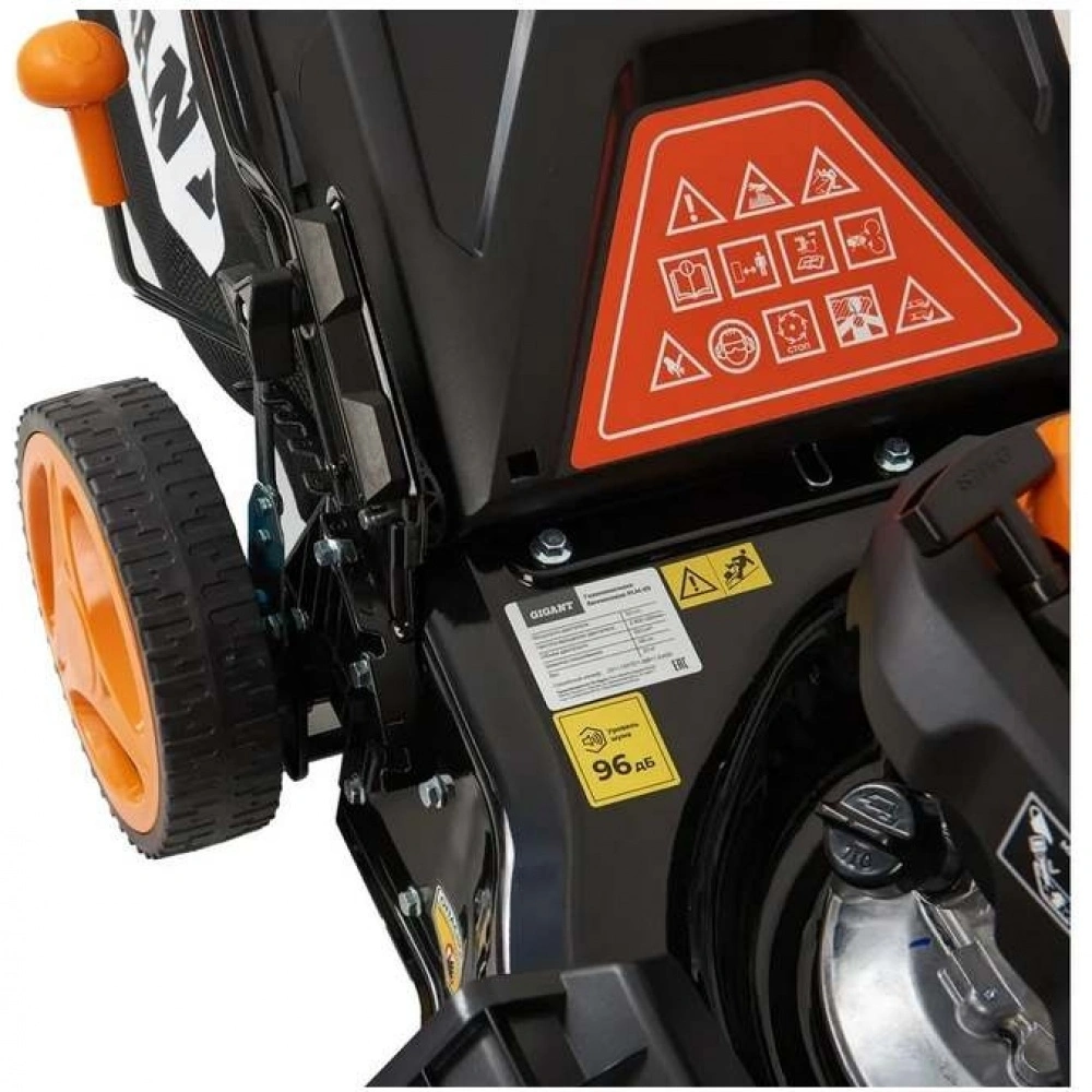 Бензиновая газонокосилка Gigant PLM-03 - самоходная машина для ухода за газоном. Косилка выполняет задний выброс травы, измельчение, боковой выброс и сбор травы в контейнер.